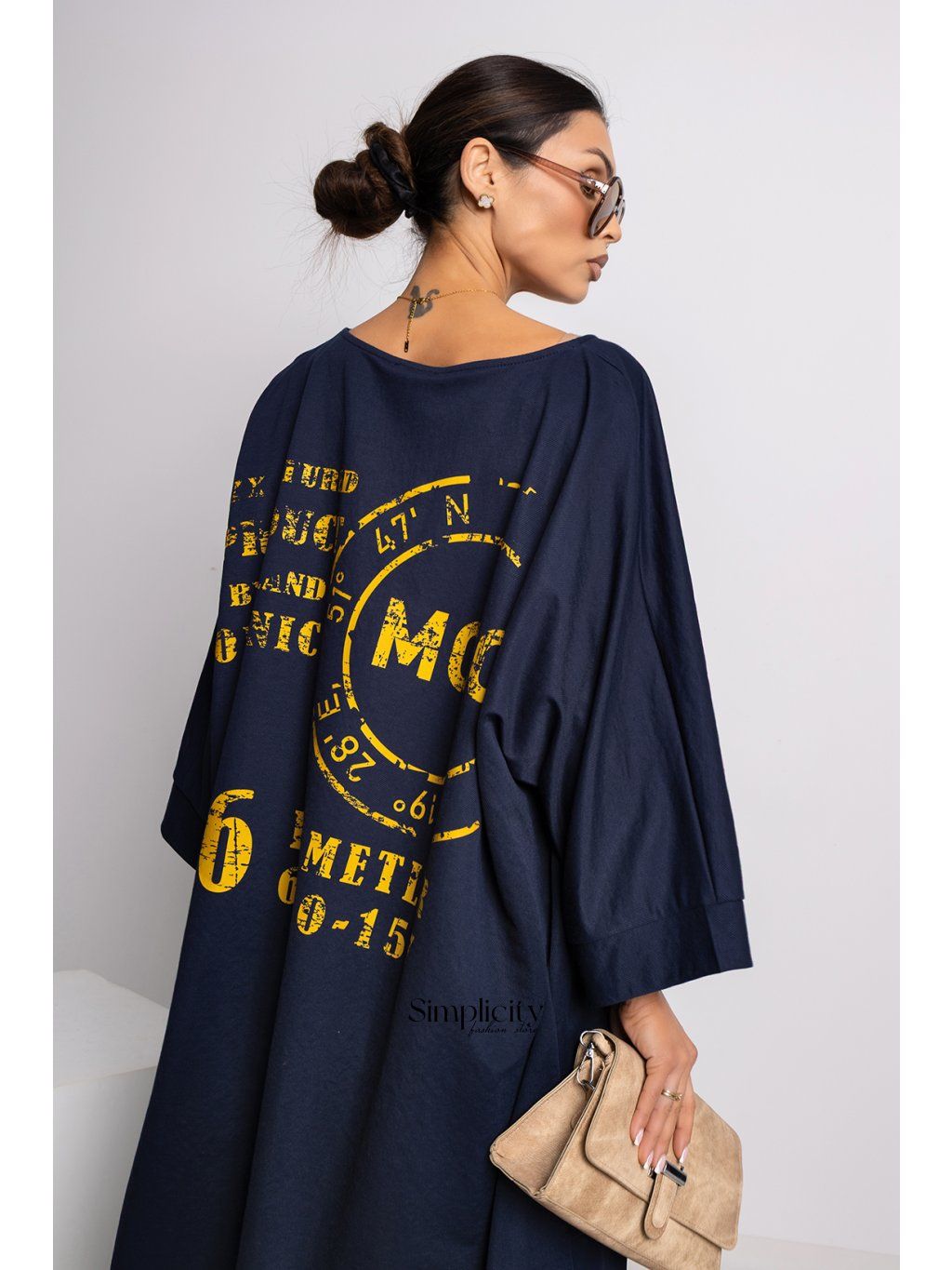Vyrobená z ľahkej látky podobnej ľanu, ponúka pohodlie a prirodzený, mierne drsný vzhľad. Voľný strih zaisťuje perfektné padnutie a celodenné pohodlie. Lodičkový výstrih jemne zvýrazňuje krk a dodáva mu ženský nádych, zatiaľ čo minimalistický tvar je narušený výraznými nápismi.