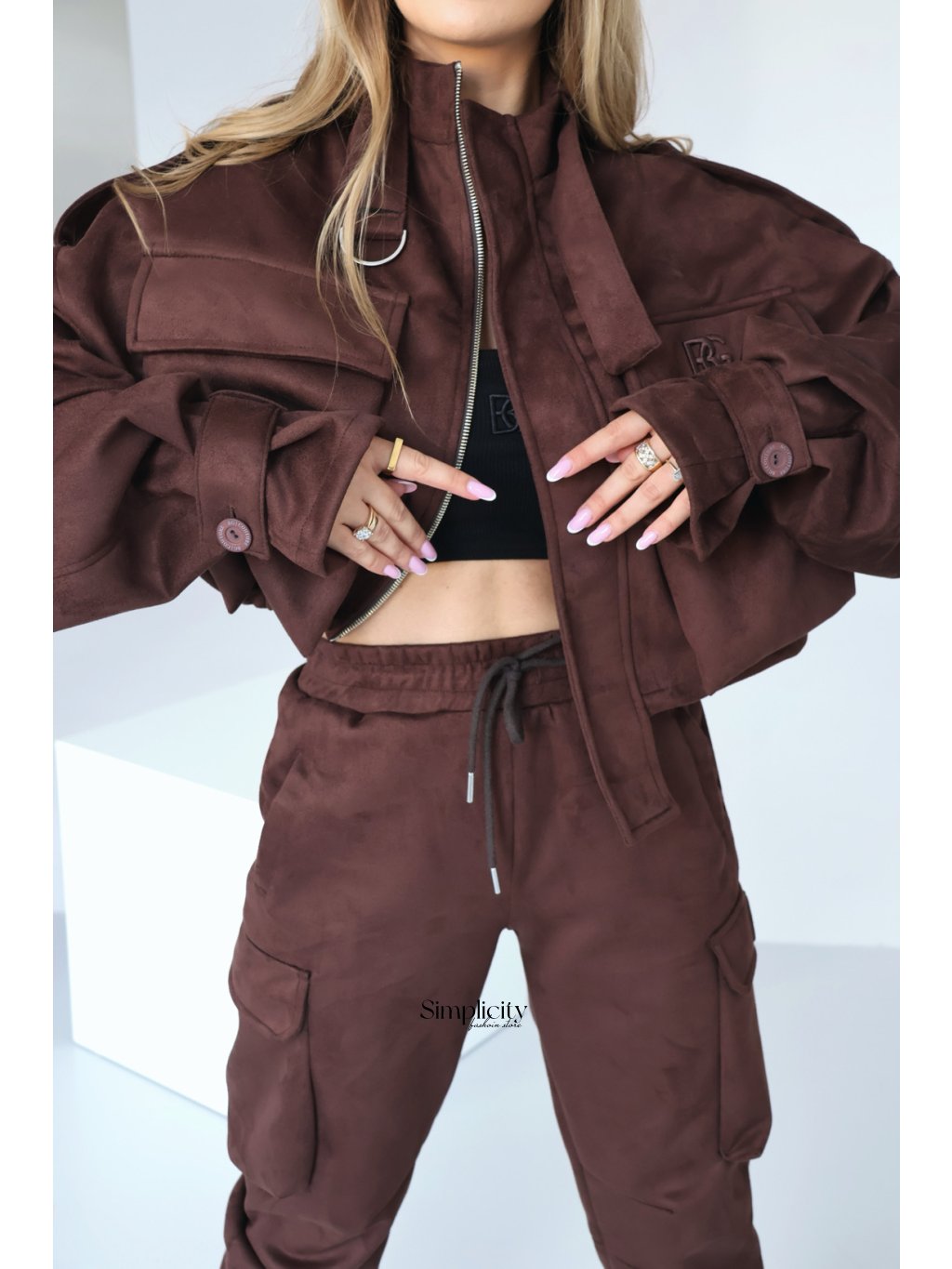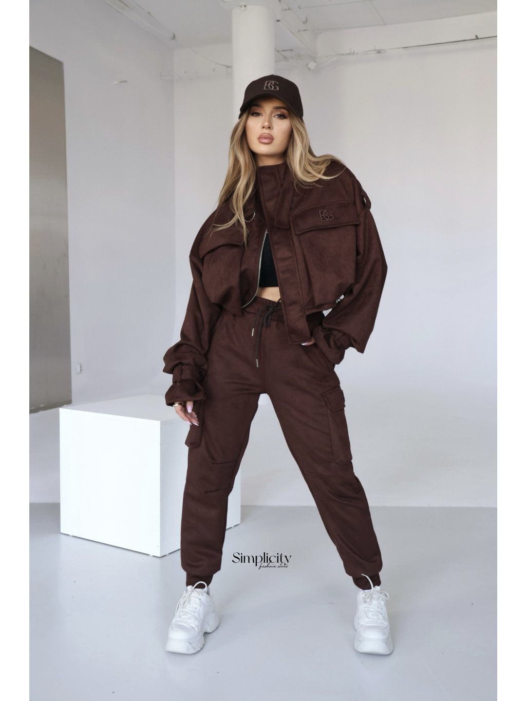 Semišová bunda BG MILITARY so strieborným zipsom. Bunda má ozdobné náramky a náramky na rukávoch, predné vrecká a logo značky BG na klope vrecka. Bunda je podšitá.