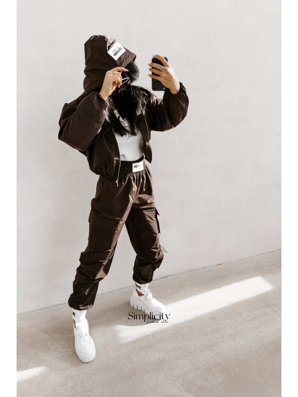 Dizajn: Model so zapínaním na zips po celej dĺžke s veľkou kapucňou nastaviteľnou šnúrkou pre ochranu pred vetrom.
