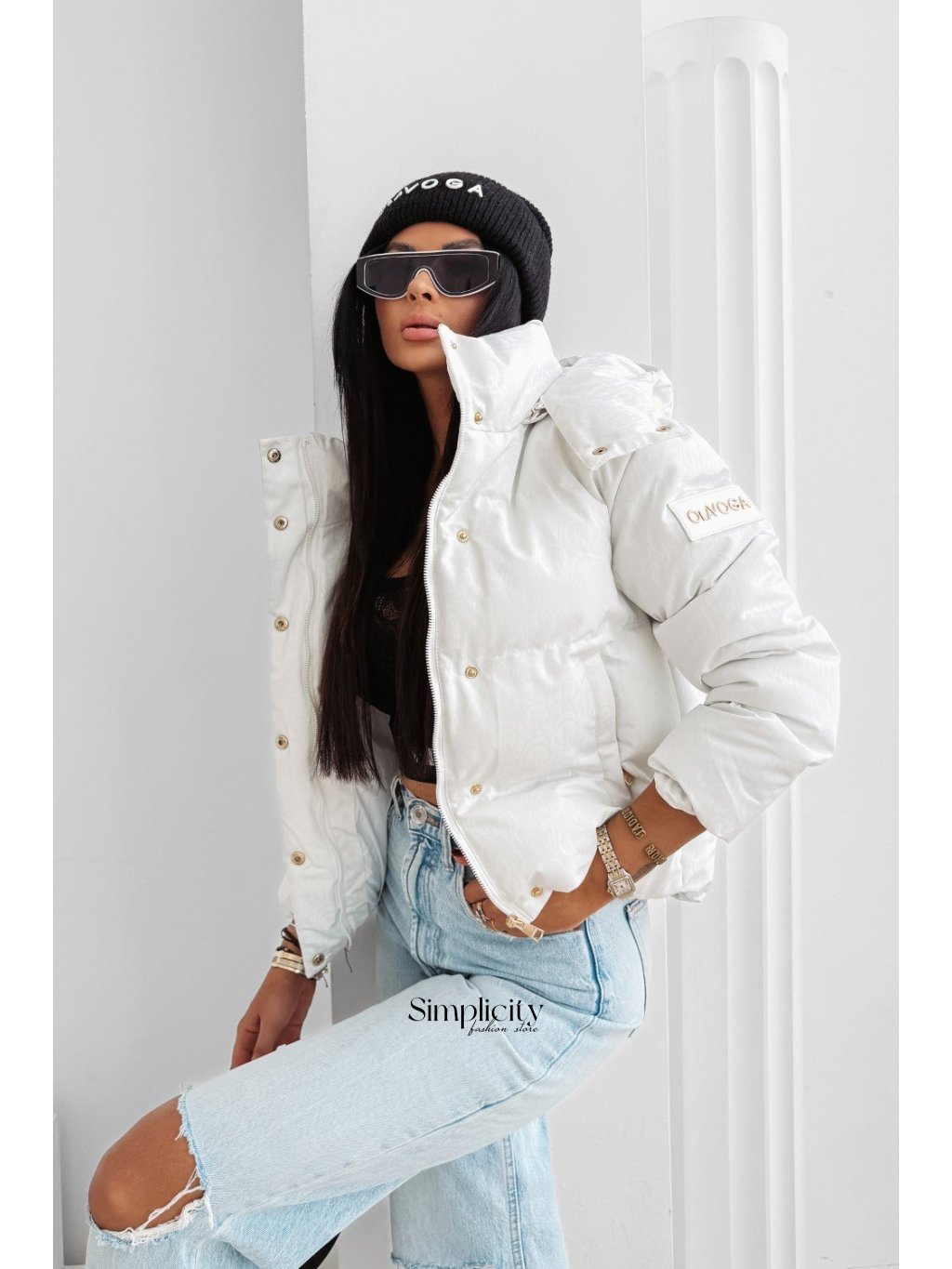 Klasická krátka bunda z materiálu - po celej ploche minimalistické monogramy . Štruktúrovaný strih s jemnými detailmi a decentným logom - nadčasový kúsok.