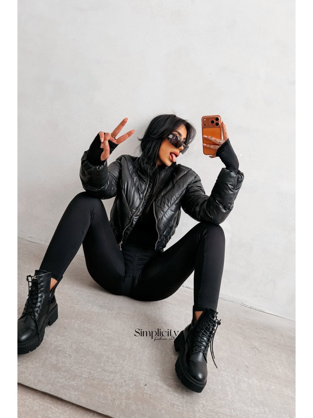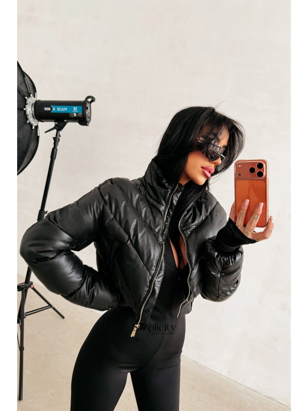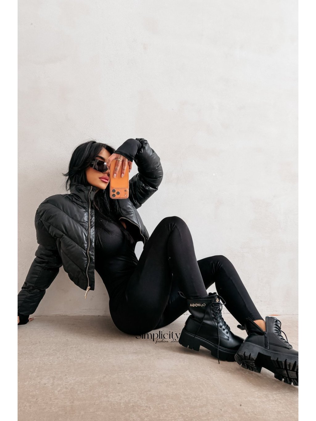 Moderná, mierne skrátená prešívaná bunda z hladkého, mierne lesklého materiálu. S pevným, zlatým, značkovým zipsom. S vysokým stojačikom, elastickými okrajmi. Zdobená jemným zlatým logom OLAVOGA na chrbte. S praktickými vreckami na zips.