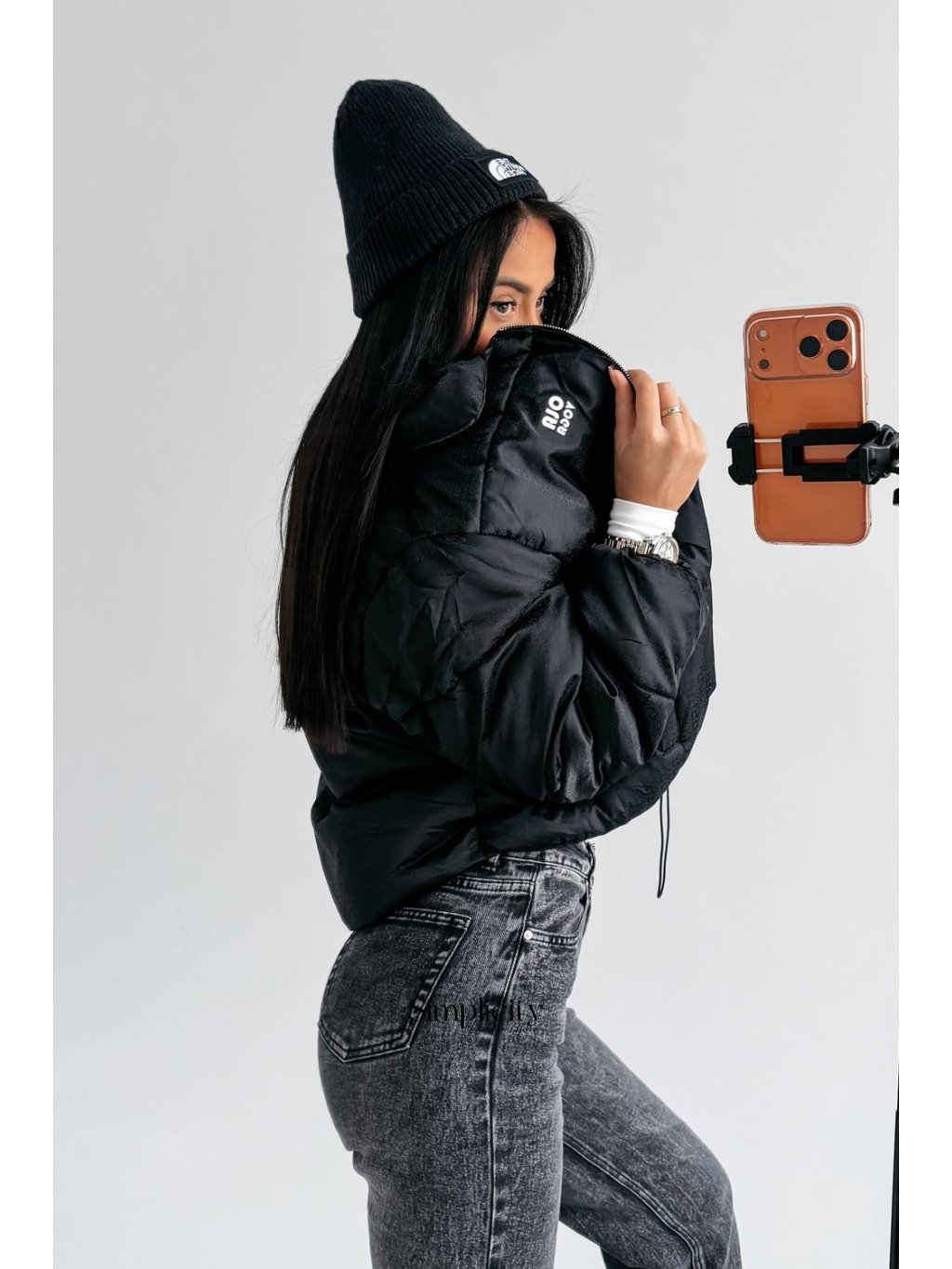 Moderná prešívaná bunda z ľahkej látky imitujúcej satén s tónovaným monogramovým vzorom OLAVOGA po celej ploche. S pevným zipsom, vysokým, mäkkým golierom a praktickými bočnými vreckami. Sťahovacia šnúrka na leme. Minimalistické kontrastné logo vpredu.