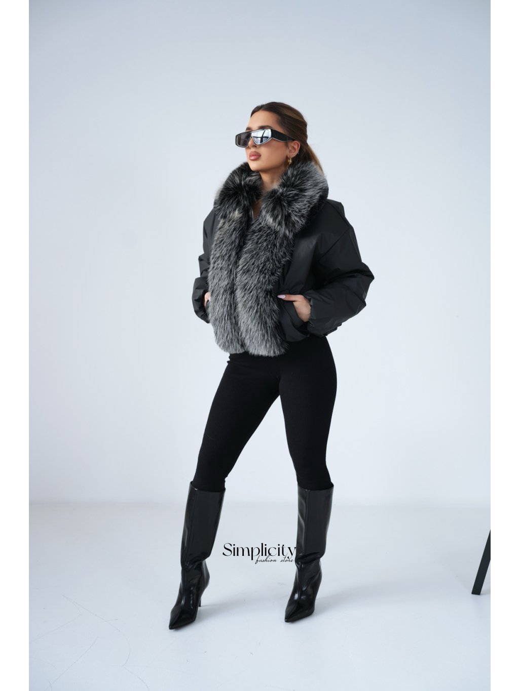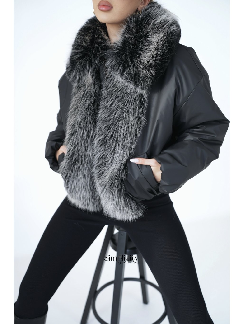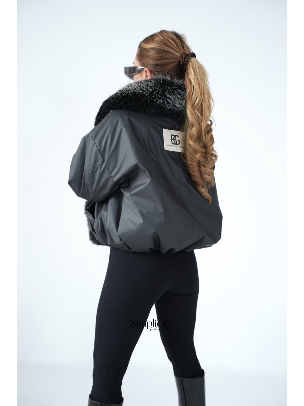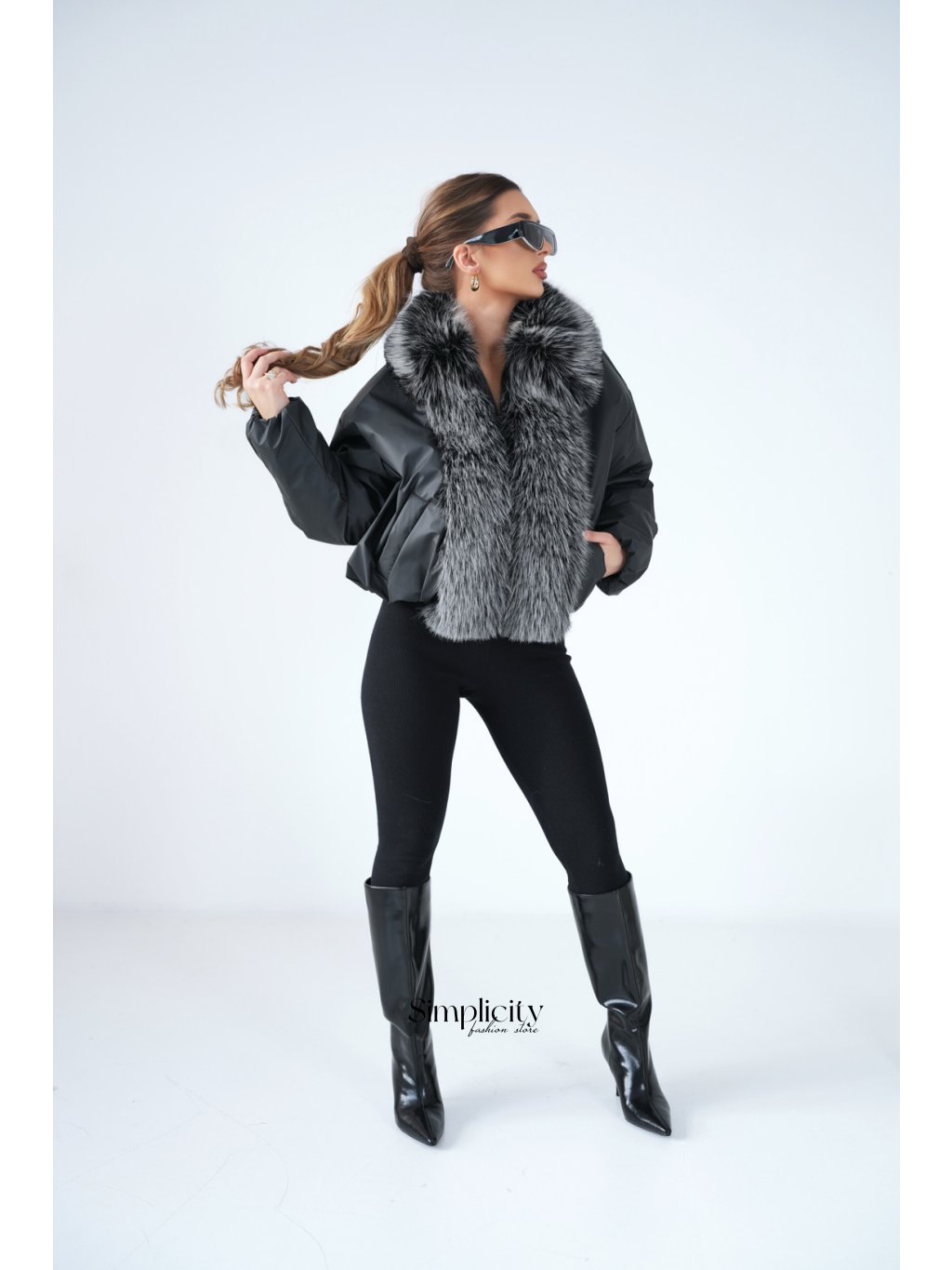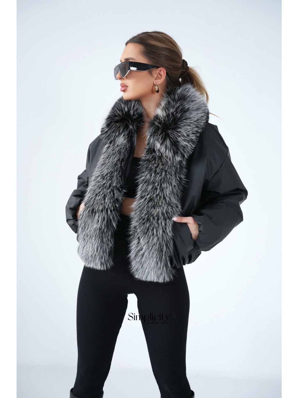 Nadrozmerný, nadýchaný golier a široké klopy sú vyrobené z ultra hustej, mäkkej umelej kožušiny. Vnútorná hrubá, mäkká podšívka udržiava bundu teplú .