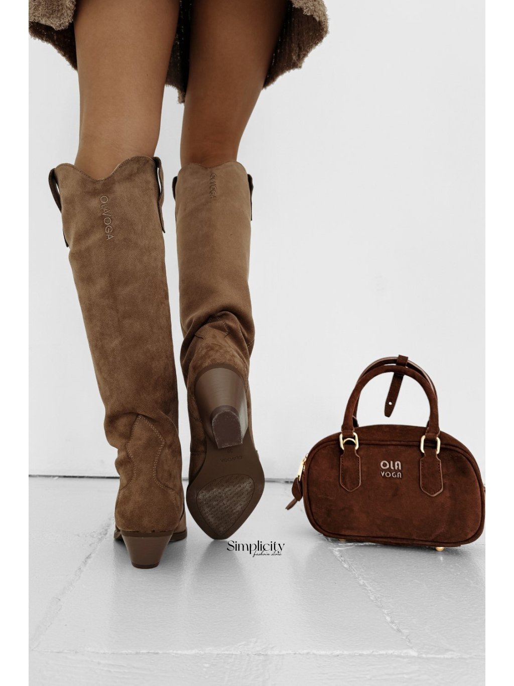 Čižmy v kovbojskom štýle. Vyrobené z mäkkého materiálu pripomínajúceho semiš.