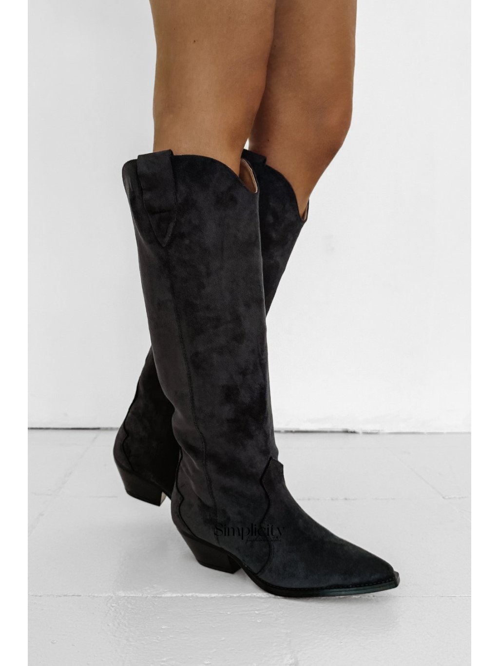 Čižmy v kovbojskom štýle. Vyrobené z mäkkého materiálu pripomínajúceho semiš.