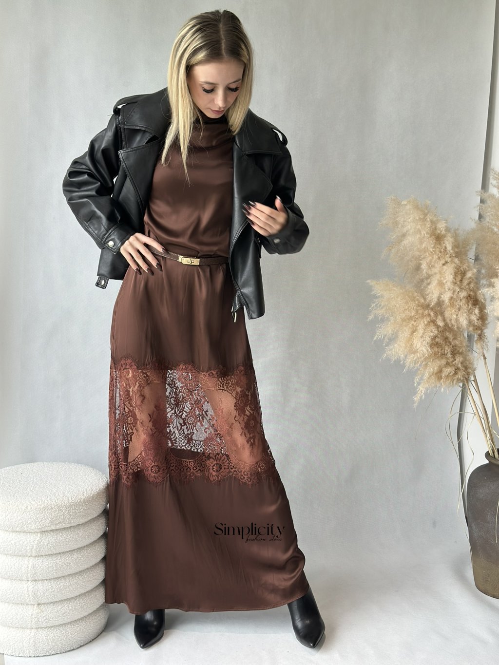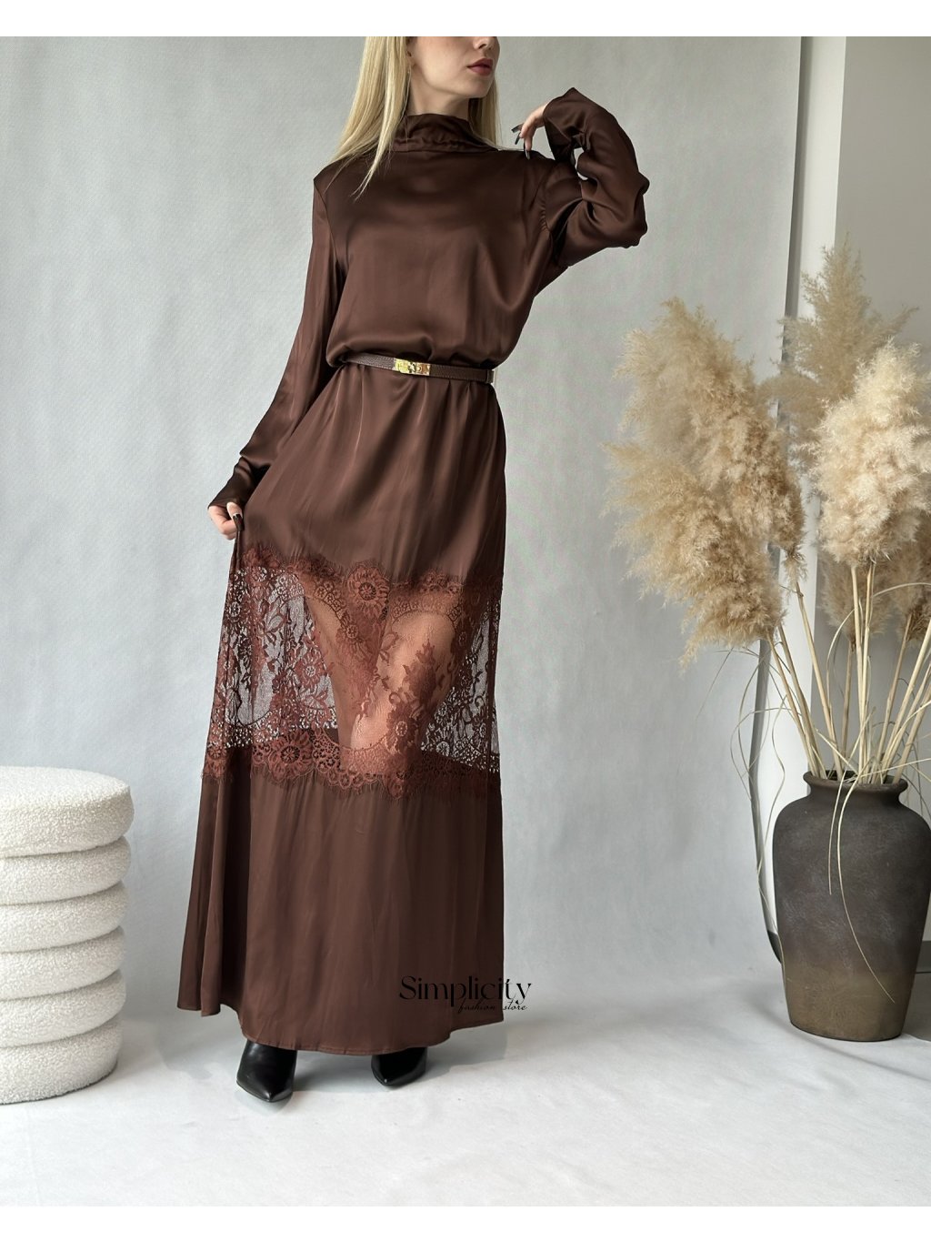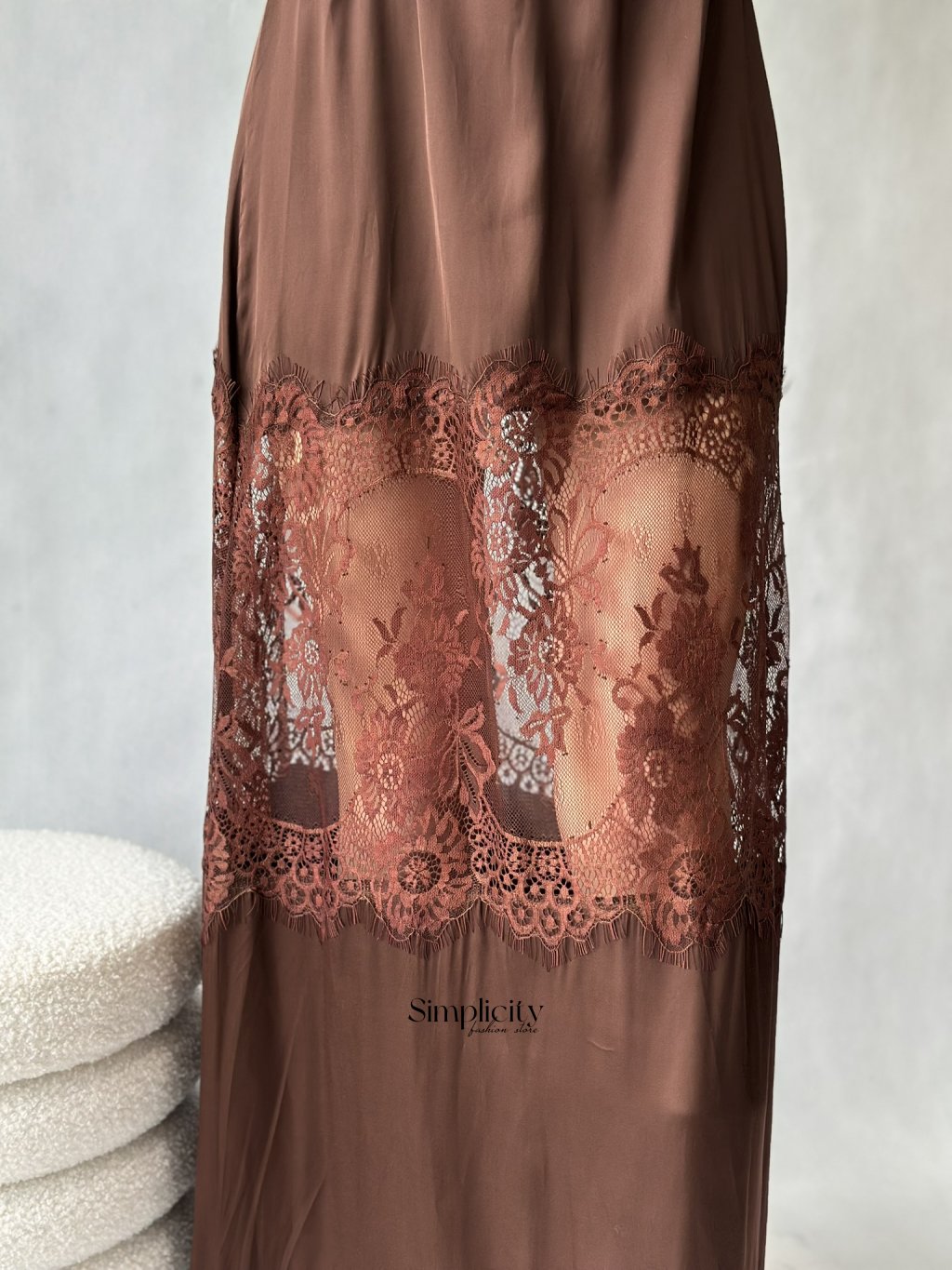 Hodvábne šaty s krajkou Tatum škoricové Premium