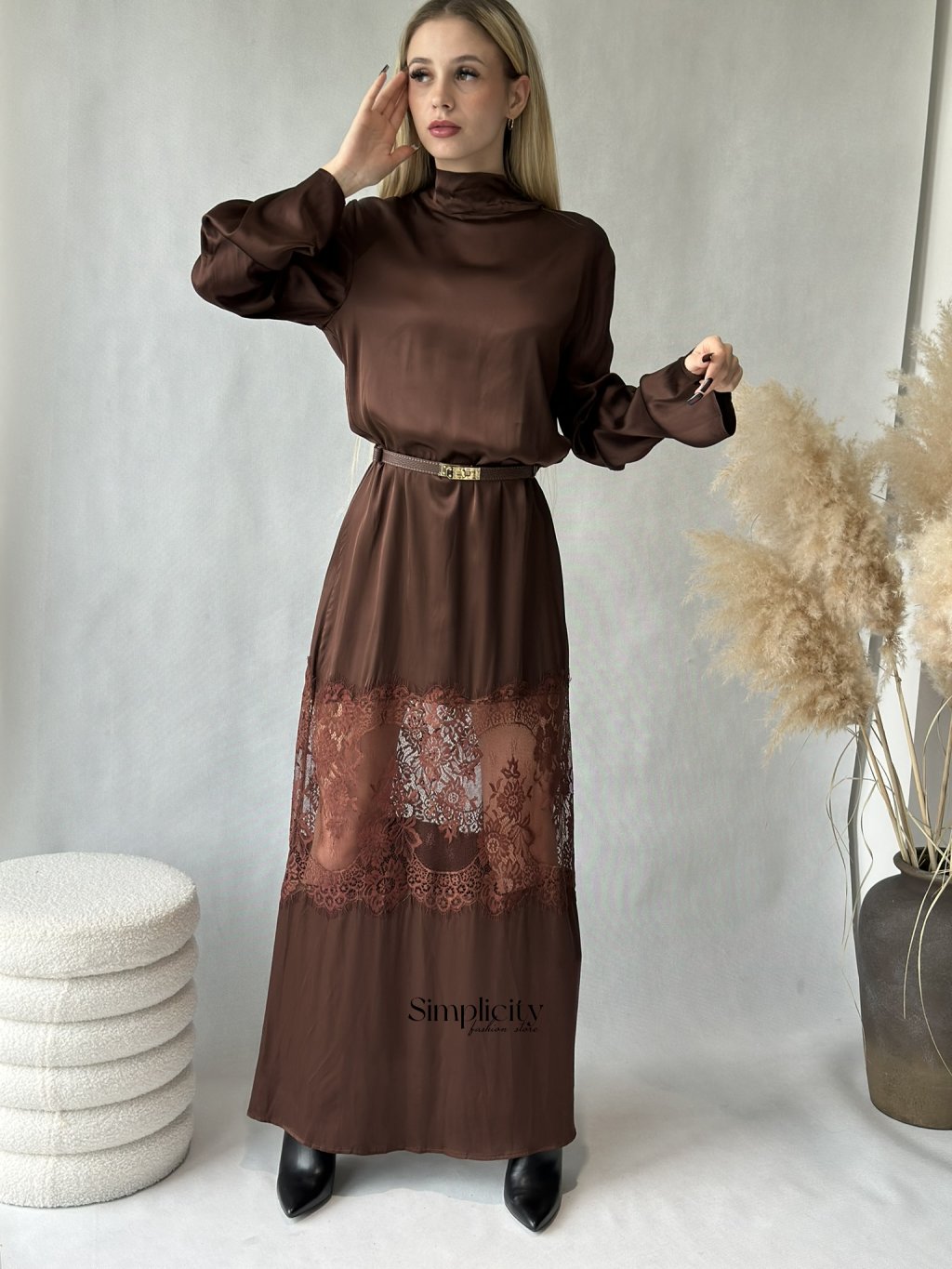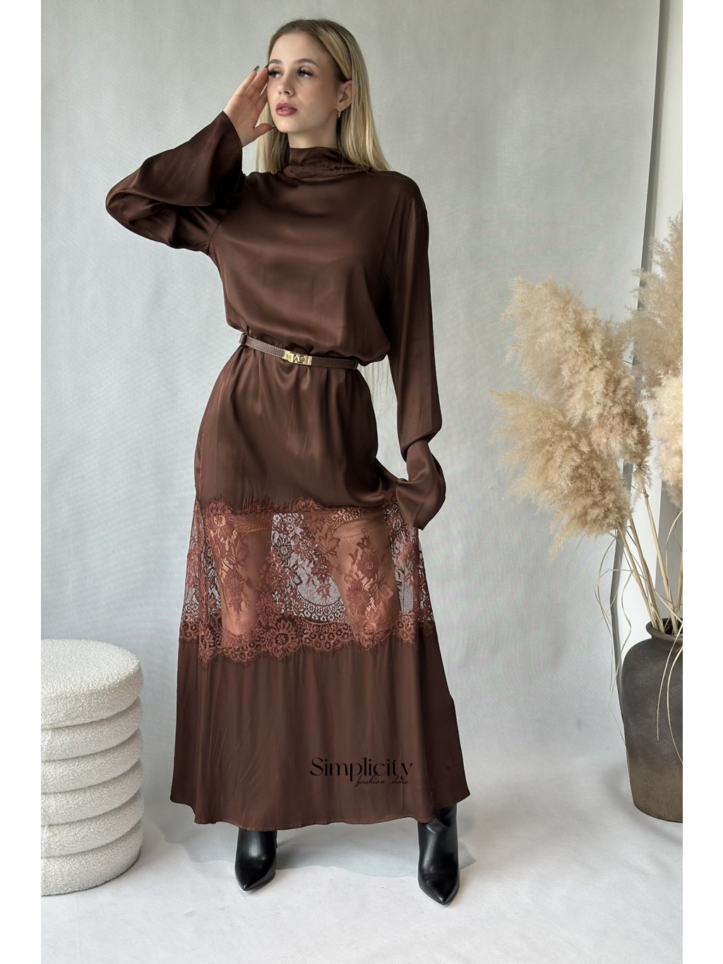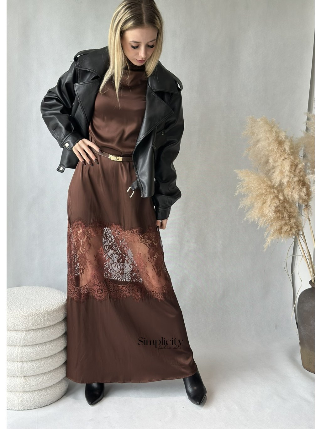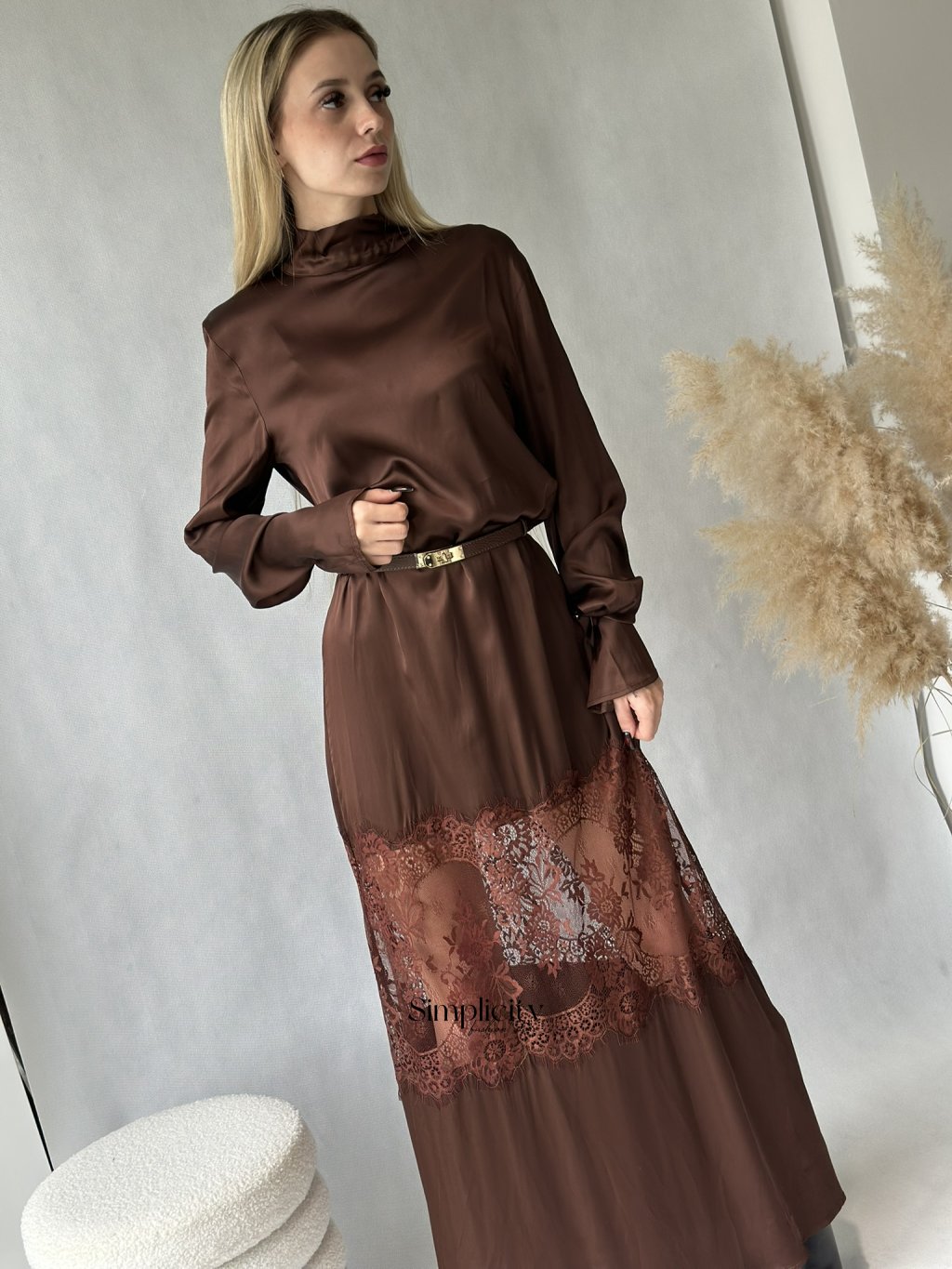 Hodvábne šaty s krajkou Tatum škoricové Premium