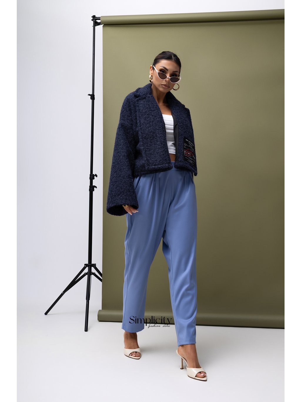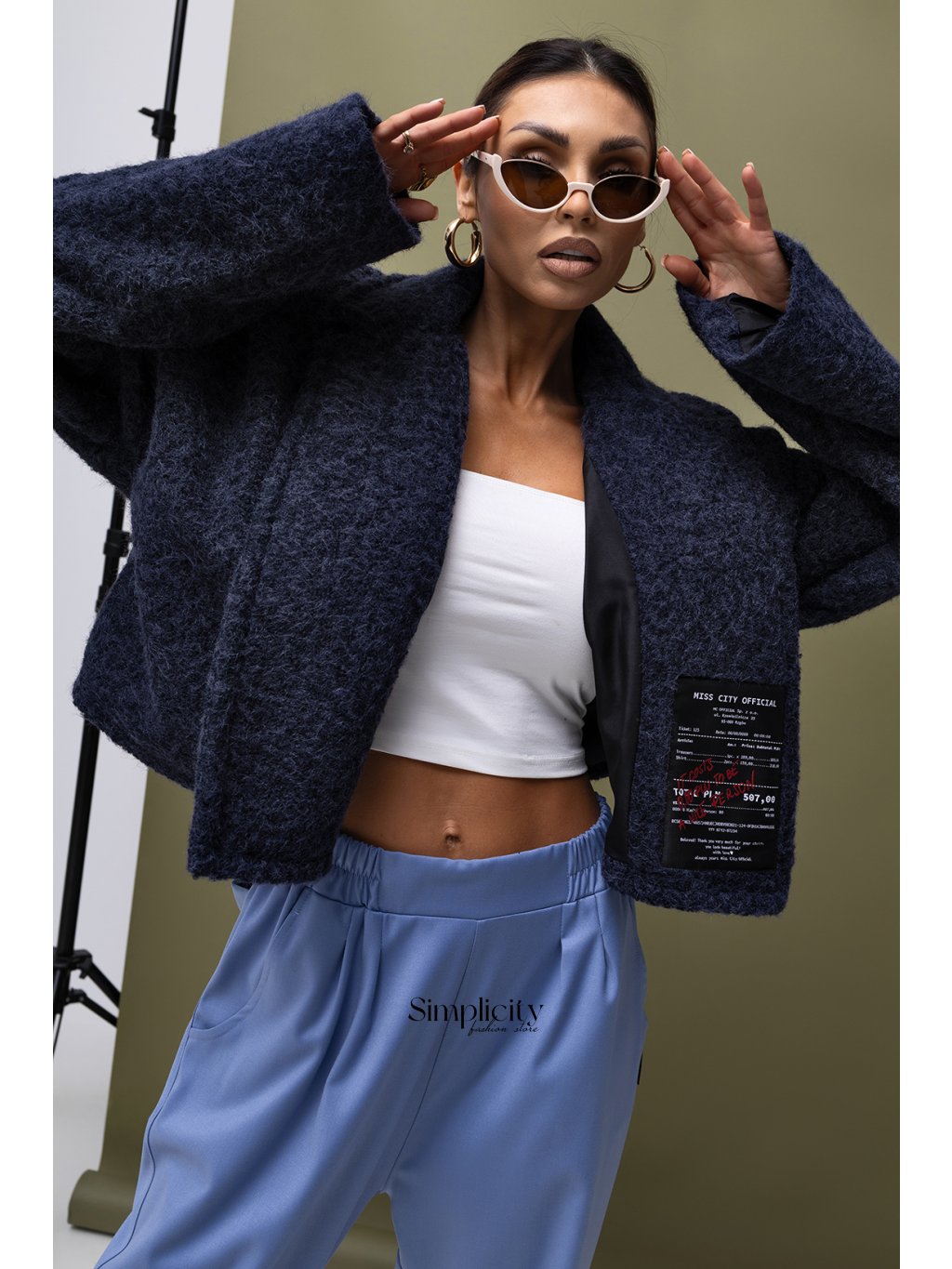 Plášť s krátkym, mierne oversized strihom, navrhnutý v modernom, mestskom štýle. Vyrobený z mäkkej, príjemnej látky na dotyk s výraznou, mierne "chlpatou" textúrou, dodáva módny nádych.