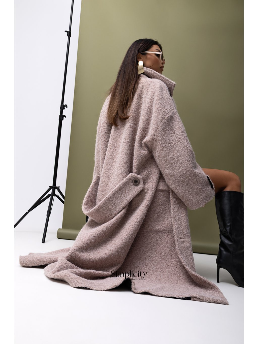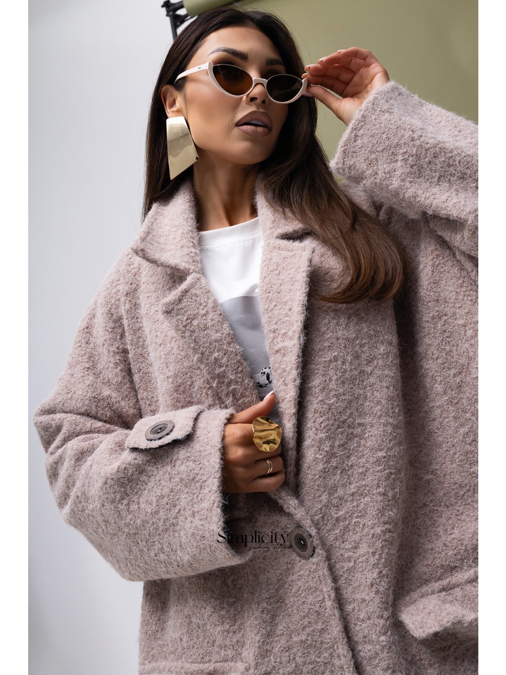 Vyrobený z mäkkej, hrubej látky s jemnou textúrou, tento kabát poskytuje teplo a pohodlie v chladnejších dňoch.