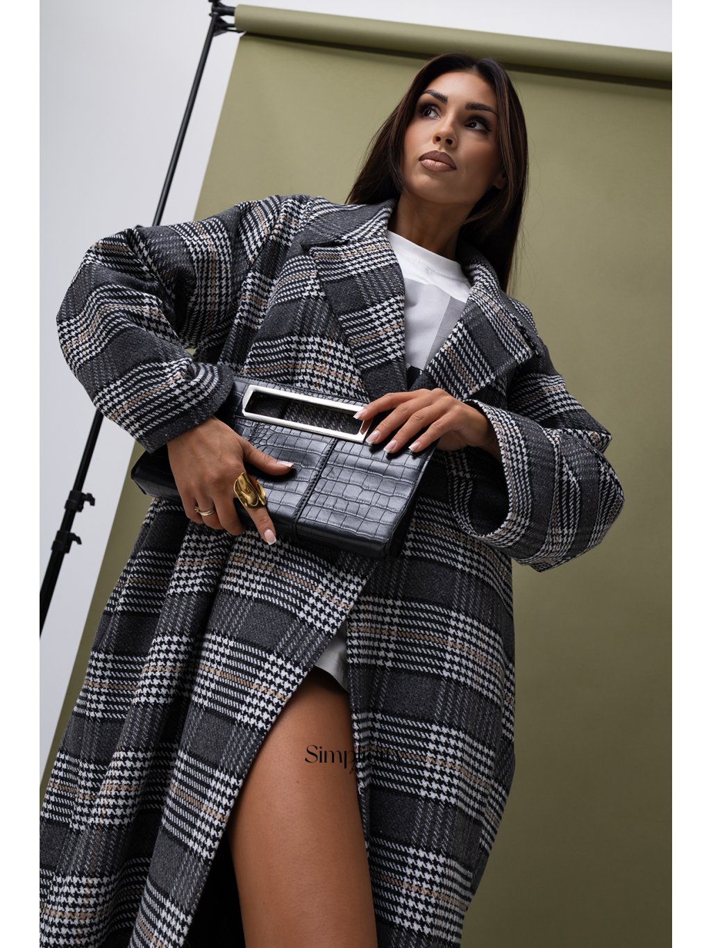 Tento nadrozmerný kabát, vyrobený z vysoko kvalitného materiálu podobného vlne, sa vyznačuje klasickým kockovaným vzorom v čiernej, bielej a sivej farbe. Má široký golier, dlhé, voľné rukávy a dĺžku pod kolená, čo zaisťuje pohodlie a slobodu pohybu. Je ideálny na jeseň a zimu, ale skvele sa hodí aj na jar v kombinácii s vhodnými doplnkami, ako je šál alebo čiapka. Jeho všestrannosť a štýl umožňujú mnoho zaujímavých kombinácií, ktoré zdôrazňujú individualitu nositeľa. Skrátka, tento kabát nie je len funkčným kúskom šatníka, ale aj štýlovým doplnkom, ktorý môže tvoriť základ mnohých módnych outfitov.