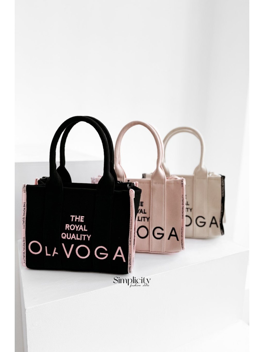 Vyrobená z vysoko kvalitného, hrubého textilného materiálu. Model má pevné a pohodlné rukoväte na nosenie v ruke, ako aj odnímateľný, nastaviteľný ramenný popruh zdobený logom OLAVOGA. Hlavná priehradka sa zapína na zips. Vnútro má praktické vrecká a elegantnú značkovú etiketu. Taška je zdobená kontrastnými stuhami s nápisom "THE ROYAL QUALITY" a zvýrazneným logom OLAVOGA na prednej strane.