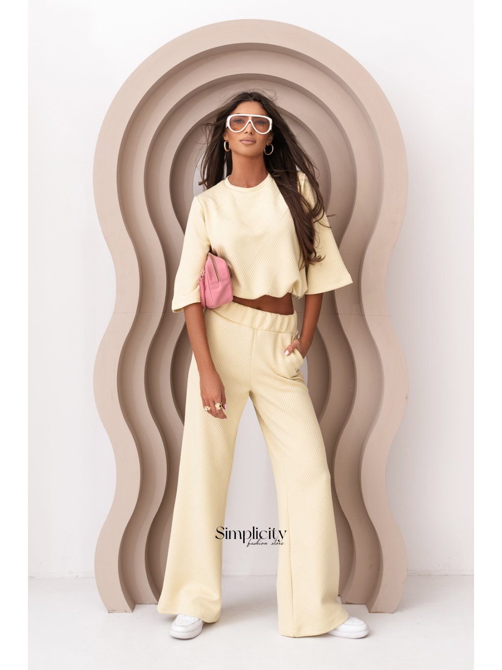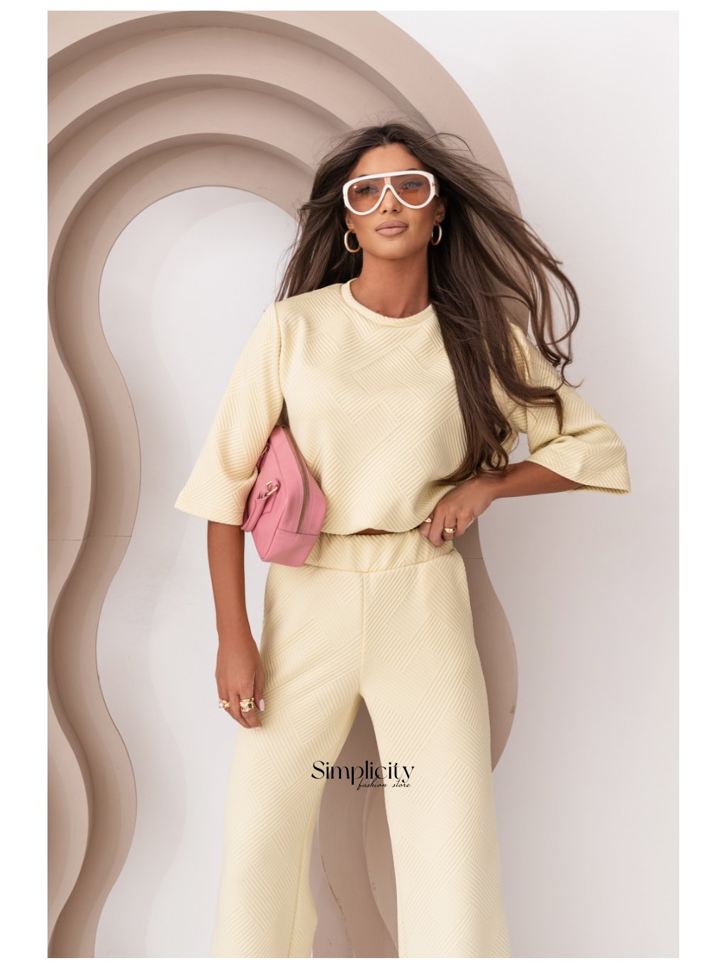 Súprava obsahuje blúzku a nohavice , ktoré vytvárajú dokonalý celok, ktorý lichotí postave a zaisťuje pohodlie.