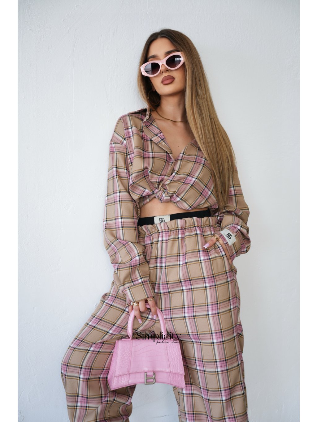 Košeľa s kockovaným vzorom BG. Malá nášivka s logom BG na rukáve. Zapínanie na gombíky. Nadmerný strih.