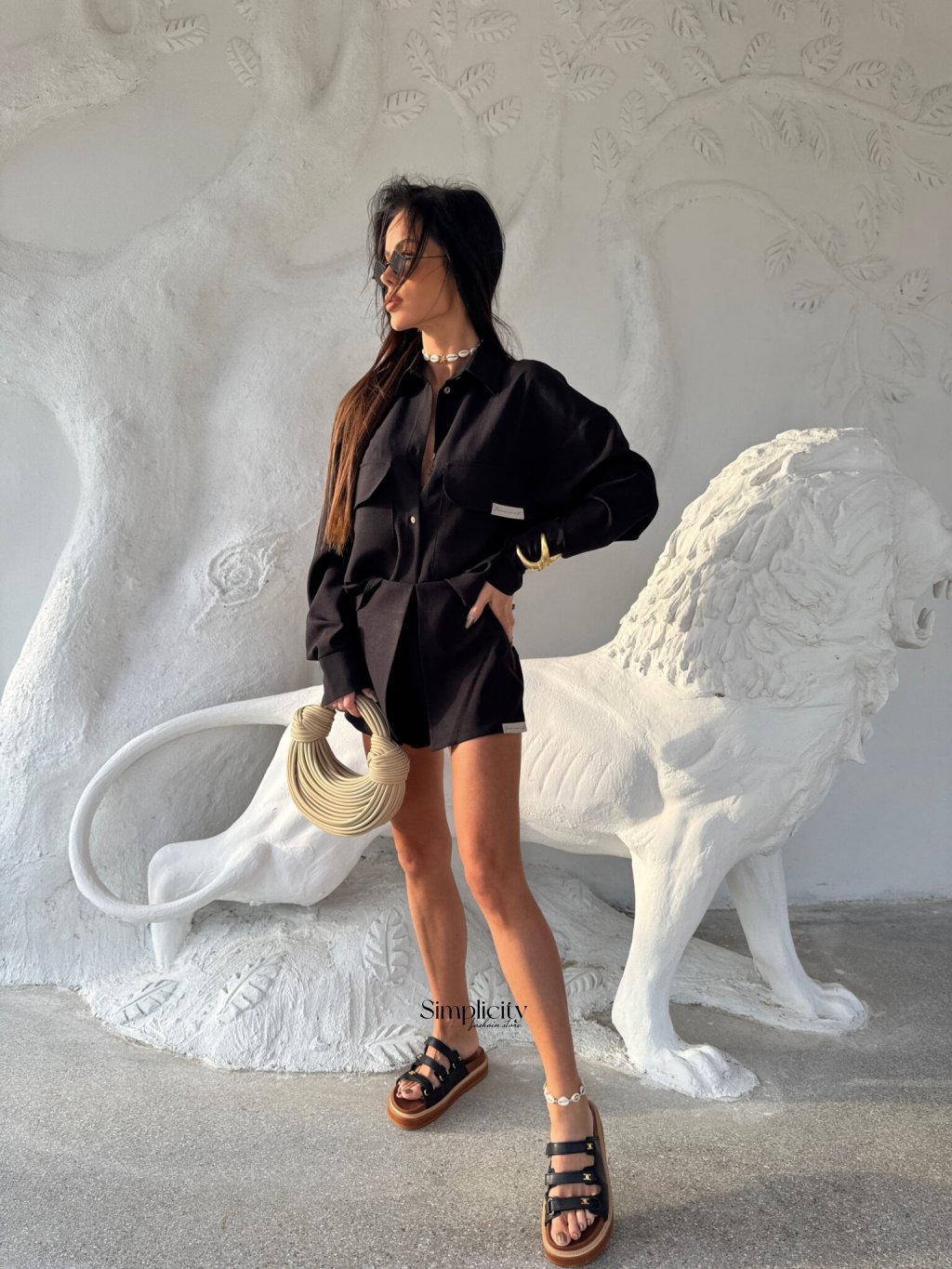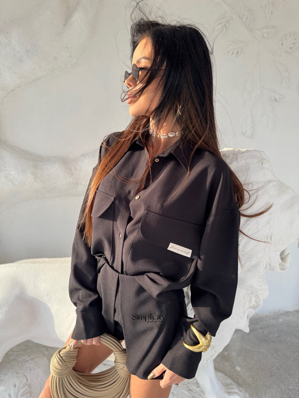 Nadrozmerná košeľa z ľahkej, jemne splývavej látky. Klasický strih je narušený veľkými, nepravidelne tvarovanými vreckámi s klopou, ktoré pútajú pozornosť a dodávajú jej charakter. Zapína sa na gombíky a na jednom vrecku má nášivku s logom značky. Všestranná, štýlová a ideálna na mestské aj cestovné nosenie.