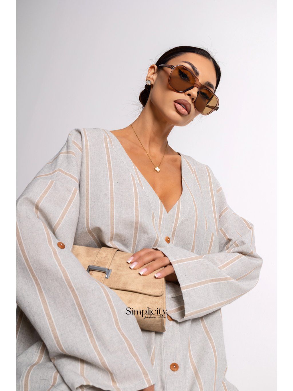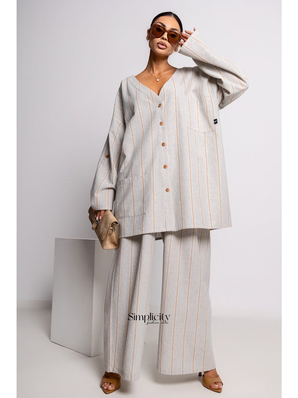 Materiál je priedušný a šetrný k pokožke, vďaka čomu je ideálnym základom pre každodenné outfity. Košeľa sa vyznačuje jemným, vertikálnym pruhom, ktorý nielen dodáva eleganciu, ale aj opticky zoštíhľuje siluetu a predlžuje telo.