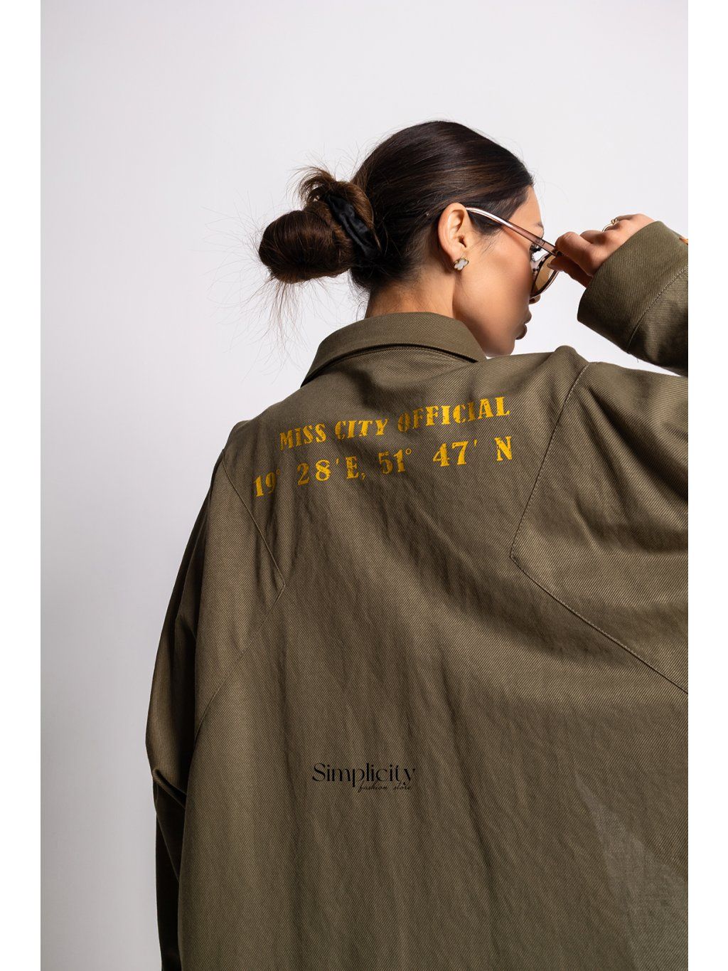 Vďaka klasickému golieru a tradičnému zapínaniu na gombíky kombinuje eleganciu s každodenným pohodlím. Ďalším charakteristickým prvkom je výrazná potlač loga značky vo vojenskom štýle na zadnej strane.