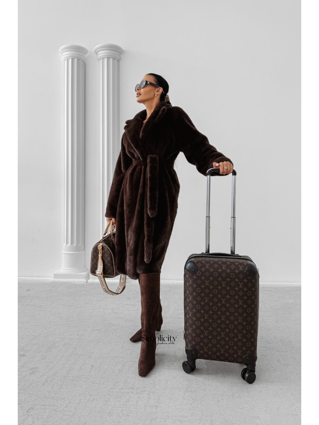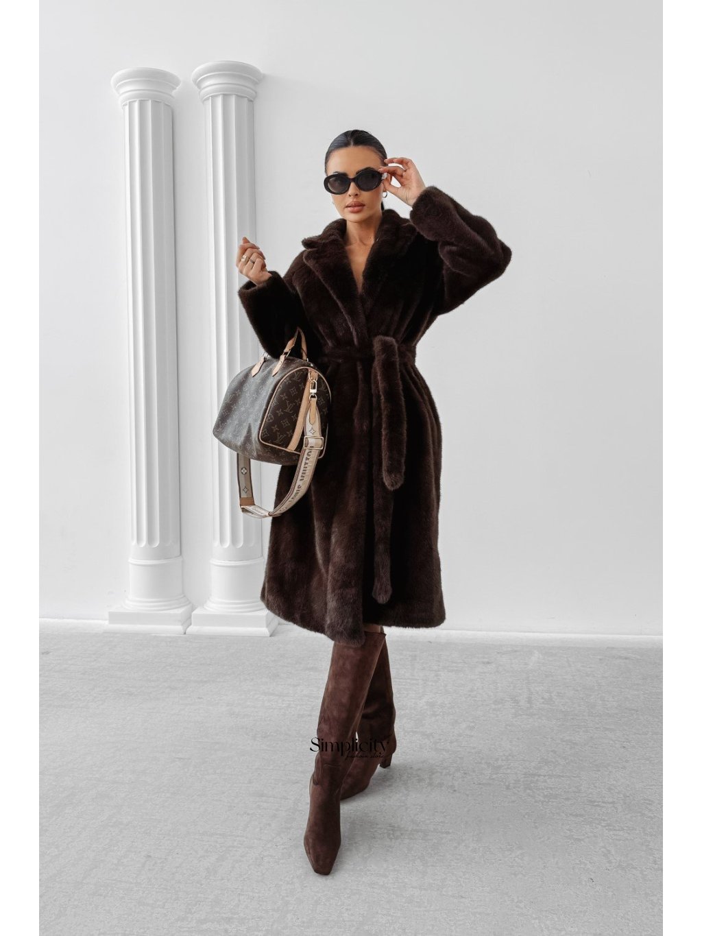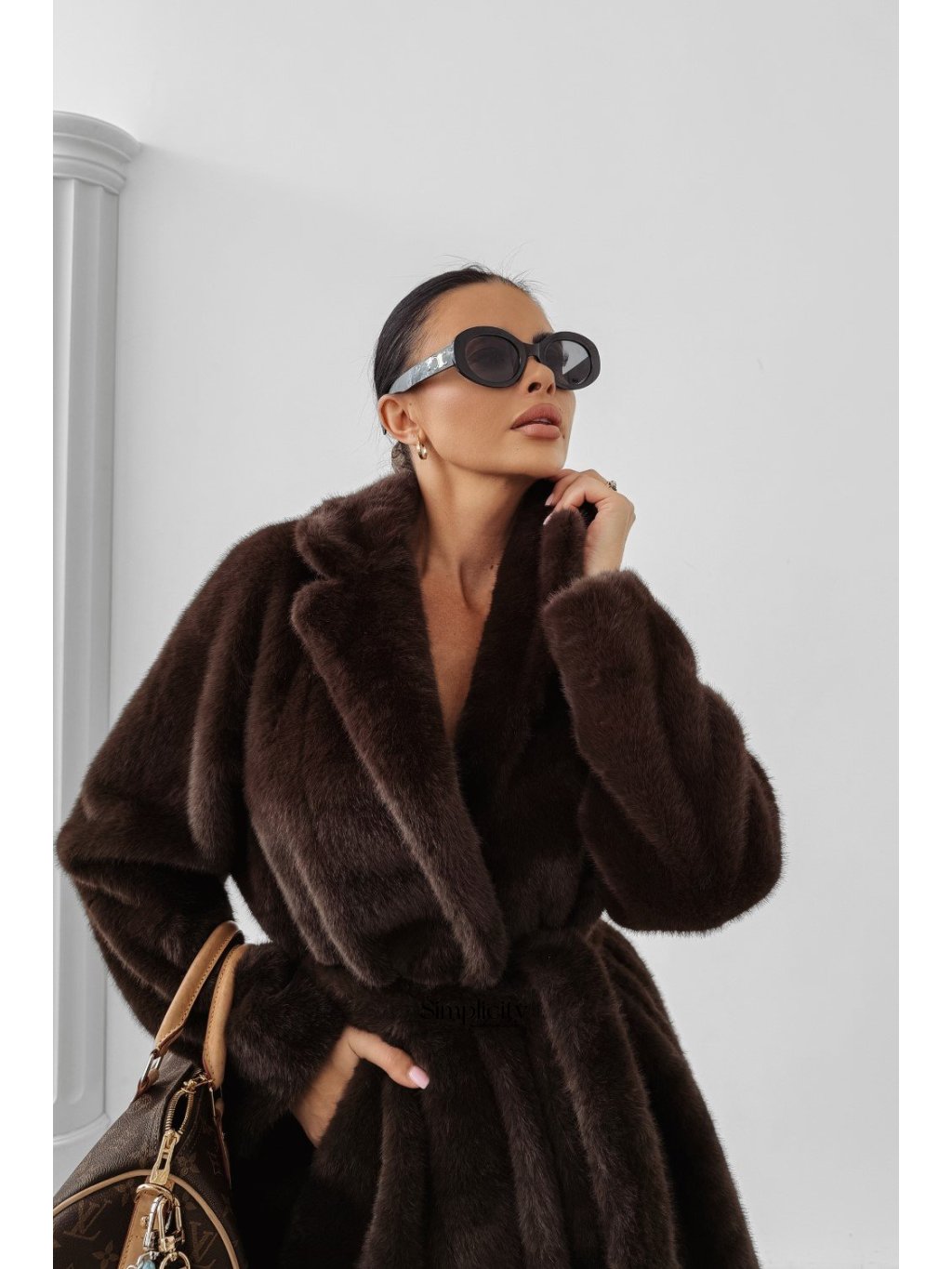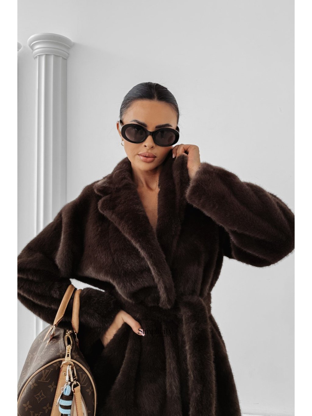 Ležérny dámsky kožuch z umelej kožušiny bez goliera z mäkkého, kvalitného materiálu. Čistý strih, skryté zapínanie a decentné logo.