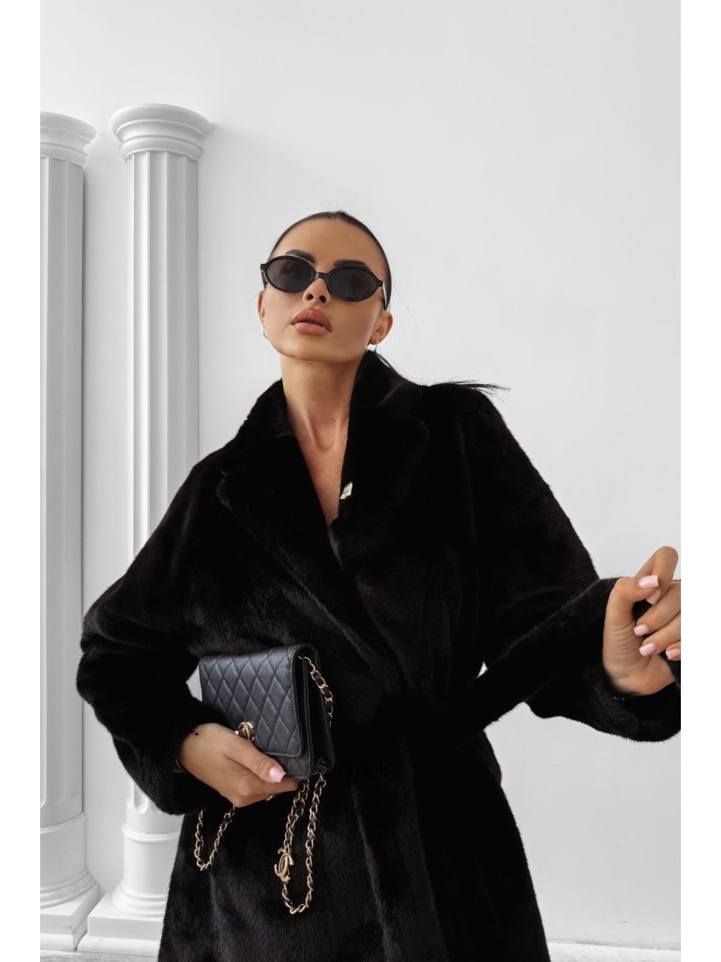 Ležérny dámsky kožuch z umelej kožušiny bez goliera z mäkkého, kvalitného materiálu. Čistý strih, skryté zapínanie a decentné logo.