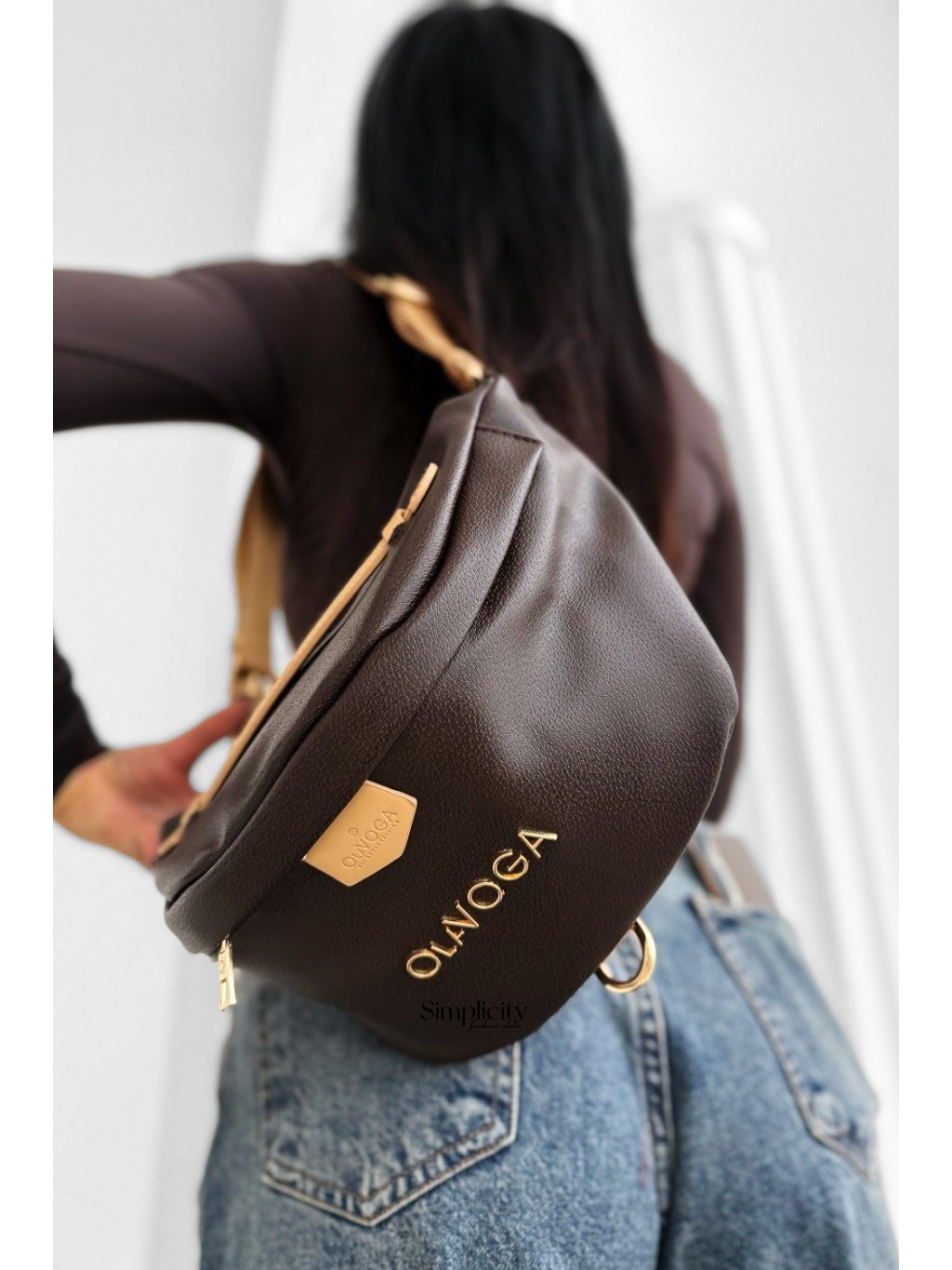Minimalistická dámska kabelka na opasok. S nastaviteľným popruhom a hlavným vreckom na zips, logo na prednej strane. Praktický mestský doplnok.