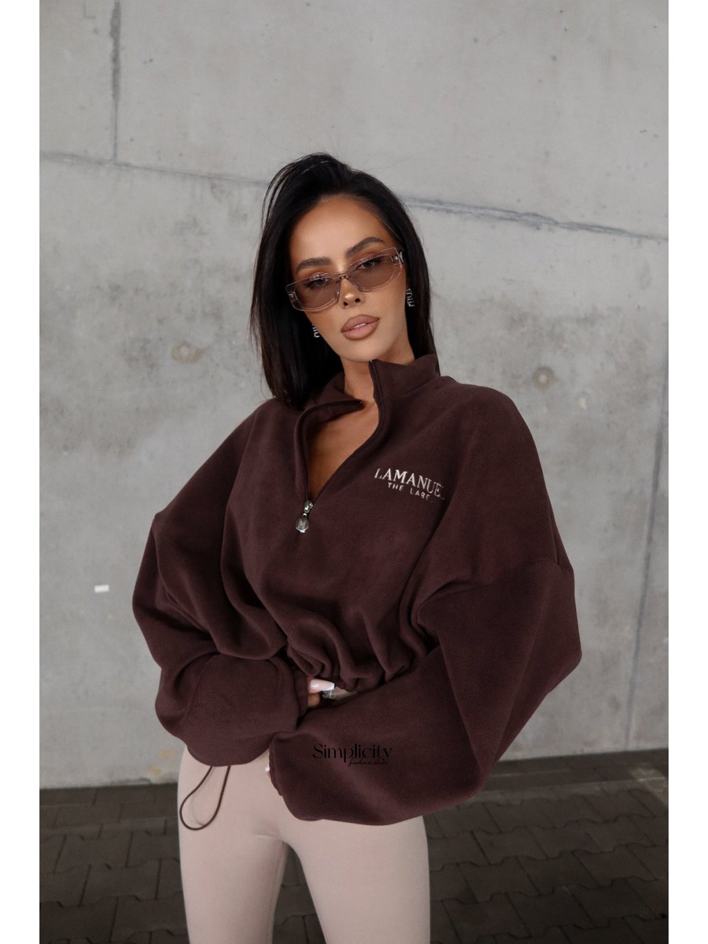 Táto nadrozmerná mikina je vyrobená z hrubého, teplého flísu, ideálna na chladnejšie dni. Materiál je mäkký, príjemný na dotyk a dobre udržiava teplo. Má krátky zips a vysoký golier, ktorý sa dá nosiť hore alebo dole pre ležérnejší vzhľad. Na prednej aj zadnej strane je farebná výšivka s logom LAMANUEL. Nastaviteľný lem umožňuje voľné nosenie alebo zapínanie na šnúrku. Jej všestranný, voľný strih je vhodný aj pre postavy do veľkosti XL.