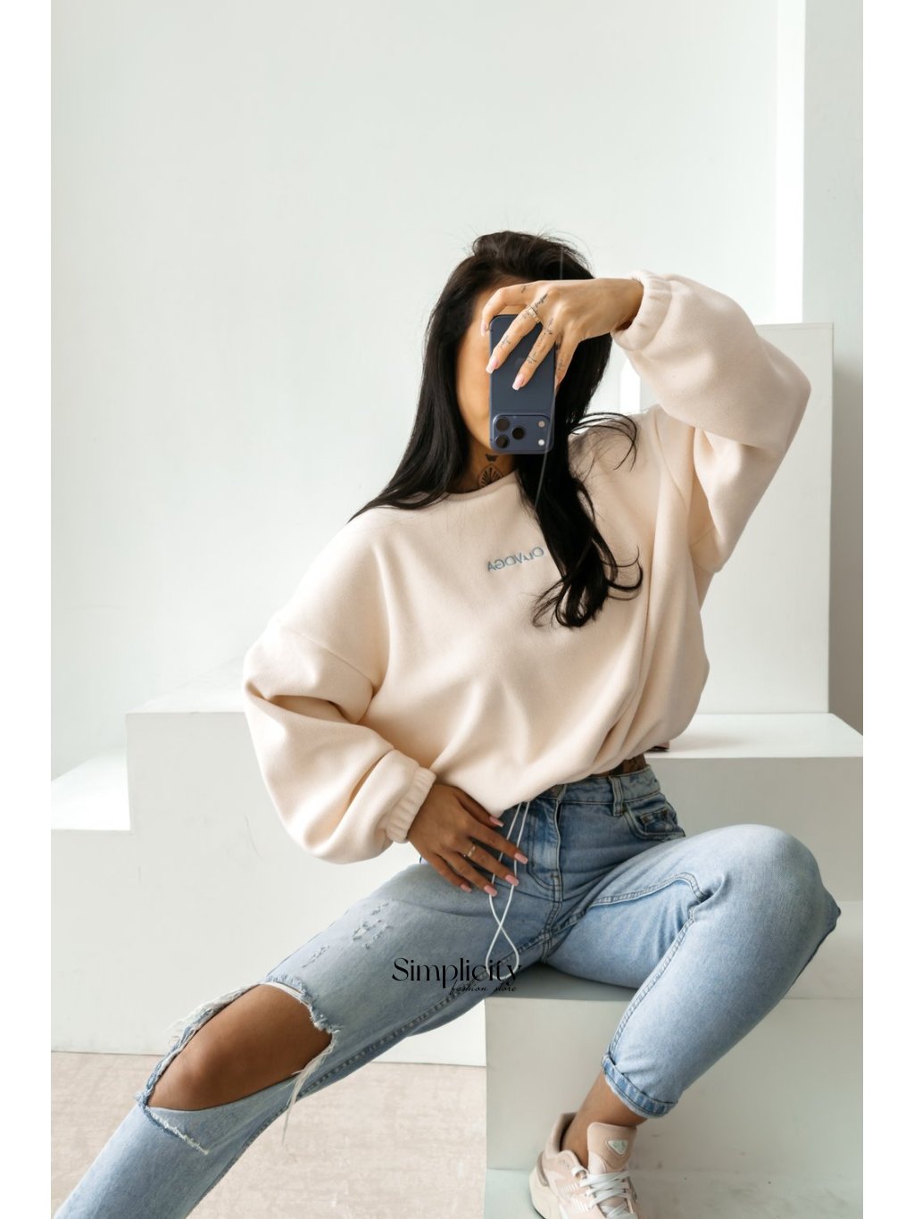 Pulover kombinuje ležérny strih s mäkkou, textúrovanou látkou, ktorá je nielen štýlová, ale poskytuje aj „esenciu pohodlia“ pre každodenné nosenie.