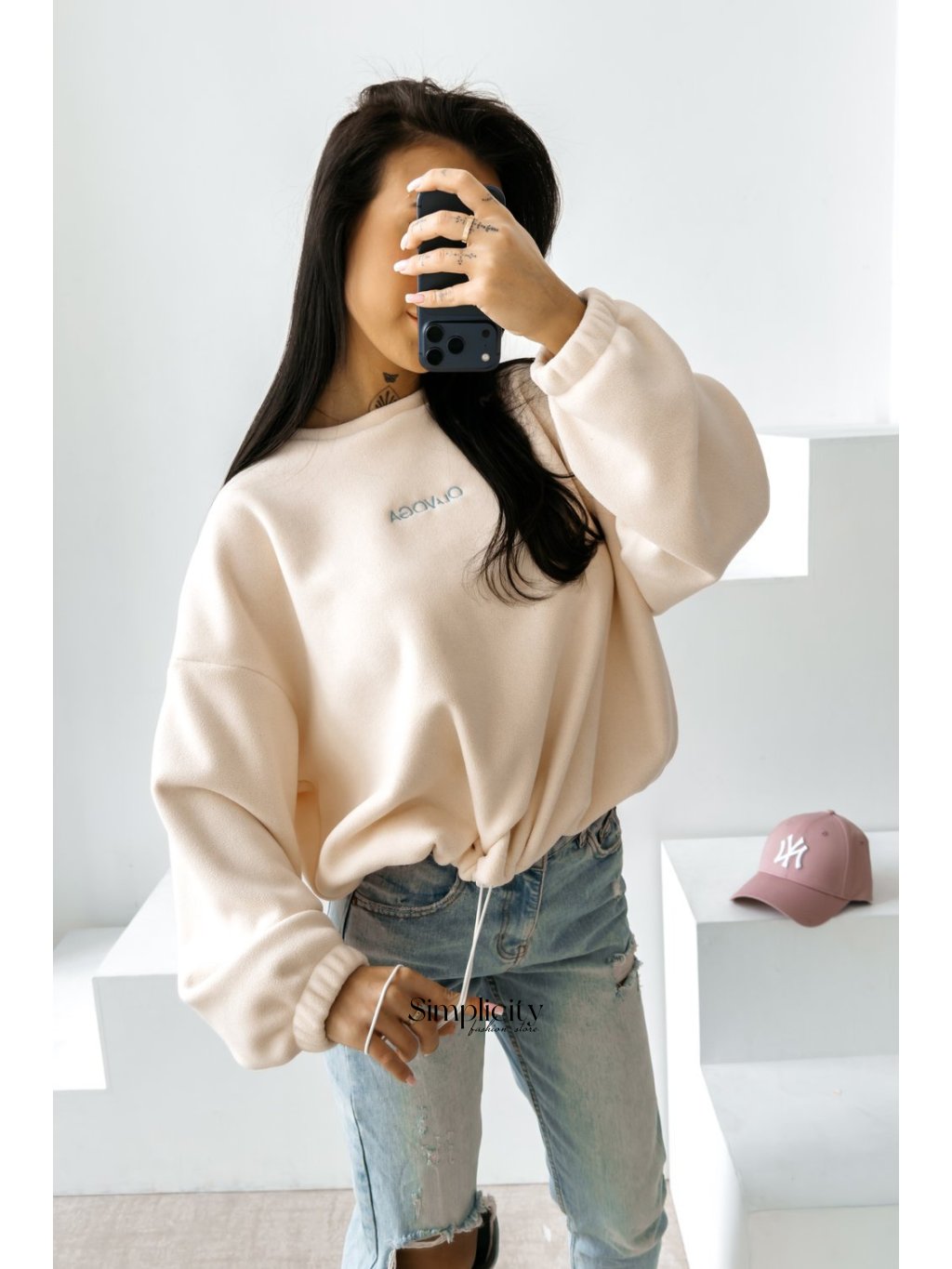 Dizajn: Spodná časť svetra sa dá nastaviť  šnúrkou, takže si môžete podľa potreby upraviť jeho plnosť a tvar.