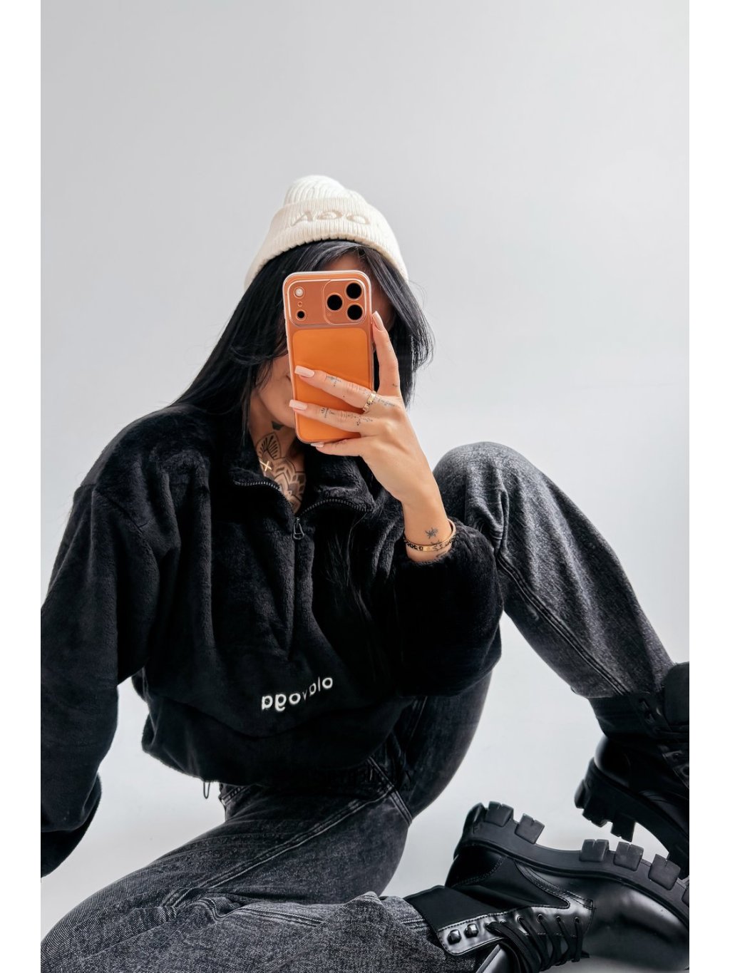 Ležérna mikina  bez kapucne,z  flísového materiálu s krátkym zipsom. Vyrobený z mimoriadne mäkkého, nadýchaného "teddy" materiálu. Klasický, mierne skrátený strih. Krátky stojačik na zips umožňuje nastavenie výstrihu. Vyšívané logo OLAVOGA na prednej strane s praktickým klokaním vreckom. Rukávy a spodný koniec s elastickou vsadkou.