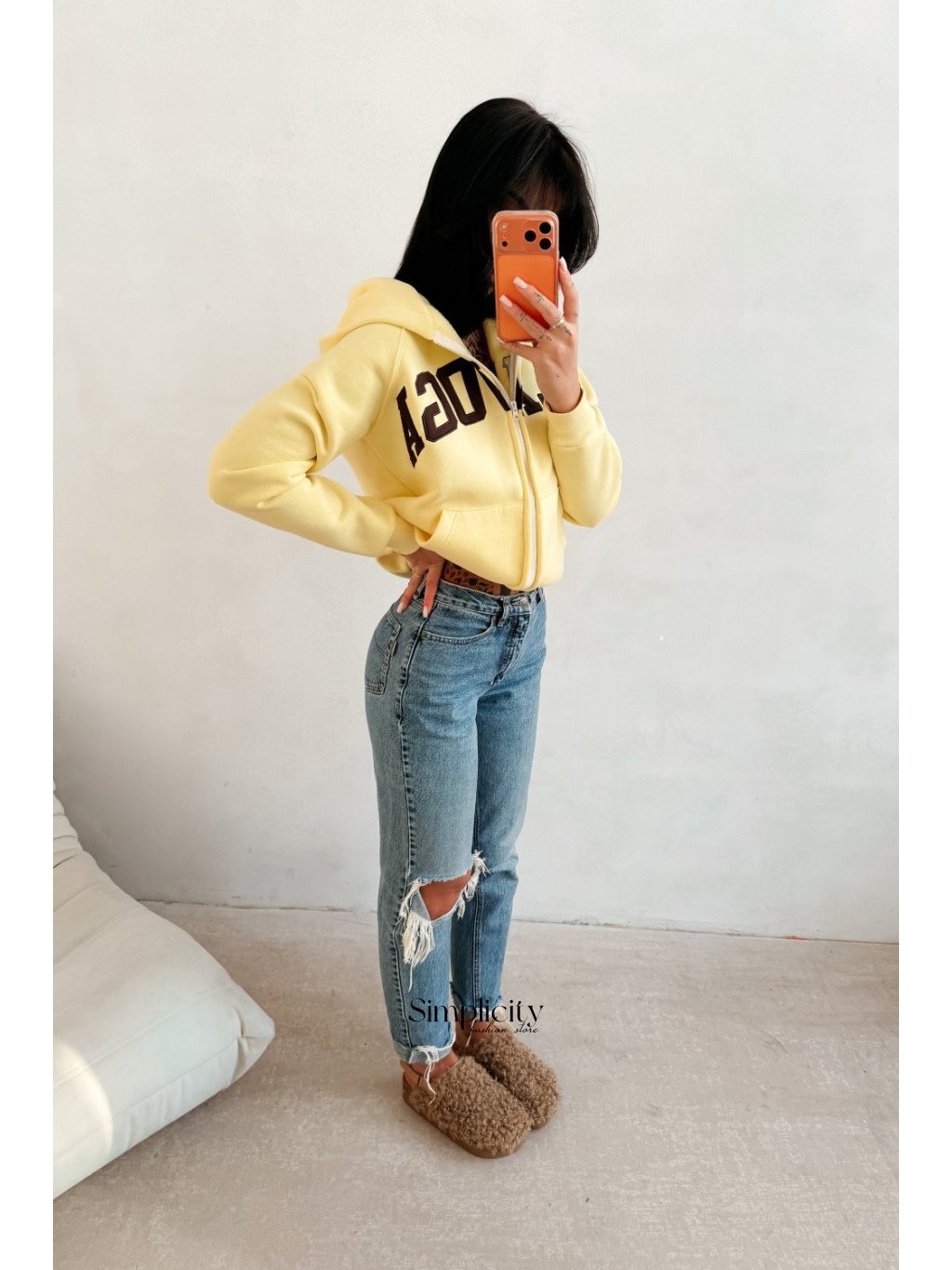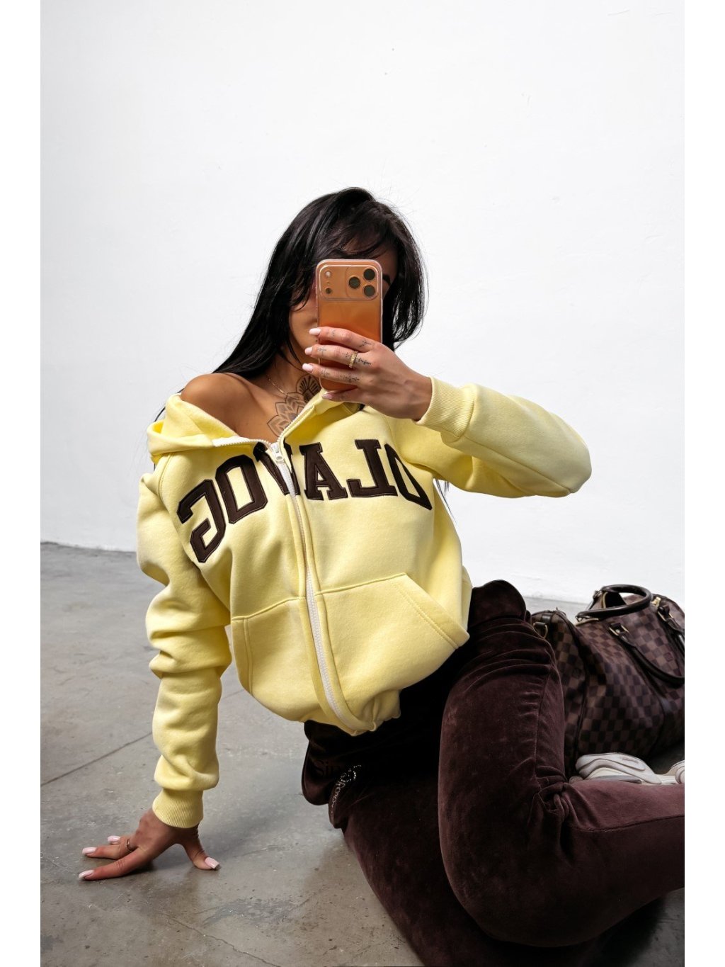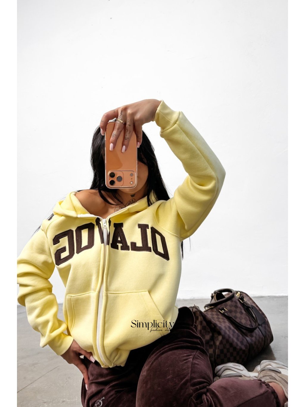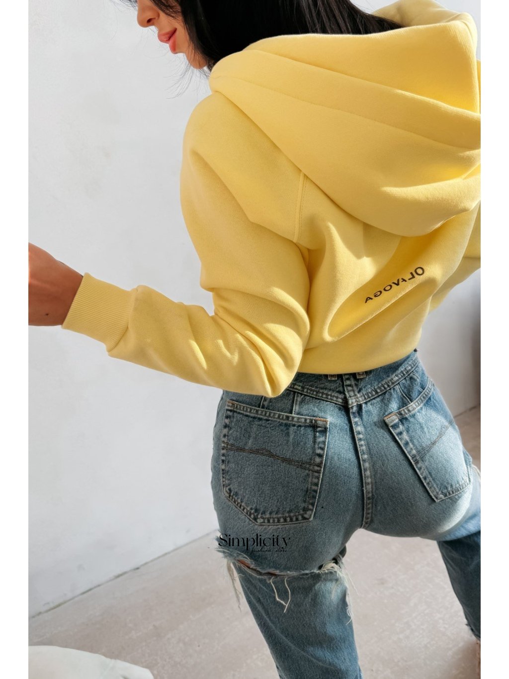 Voľne strihaná mikina s kapucňou s moderným a pohodlným strihom. Vyrobená z kvalitného, mäkkého bavlneného úpletu. Elastický, rebrovaný lem na okrajoch. Praktické vrecká po stranách. Predná strana je zdobená veľkou, starostlivo vyšívanou výšivkou loga OLAVOGA.