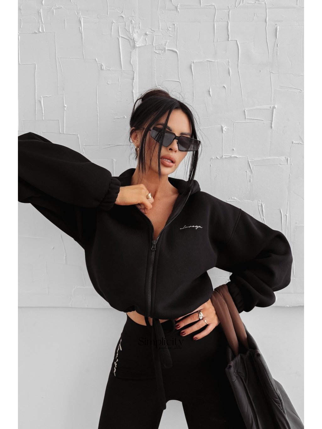 Športová skrátená mikina na zips z mäkkej, elastickej látky s nastaviteľnou kapucňou/výstrihom a praktickými detailmi. Logo vpredu.