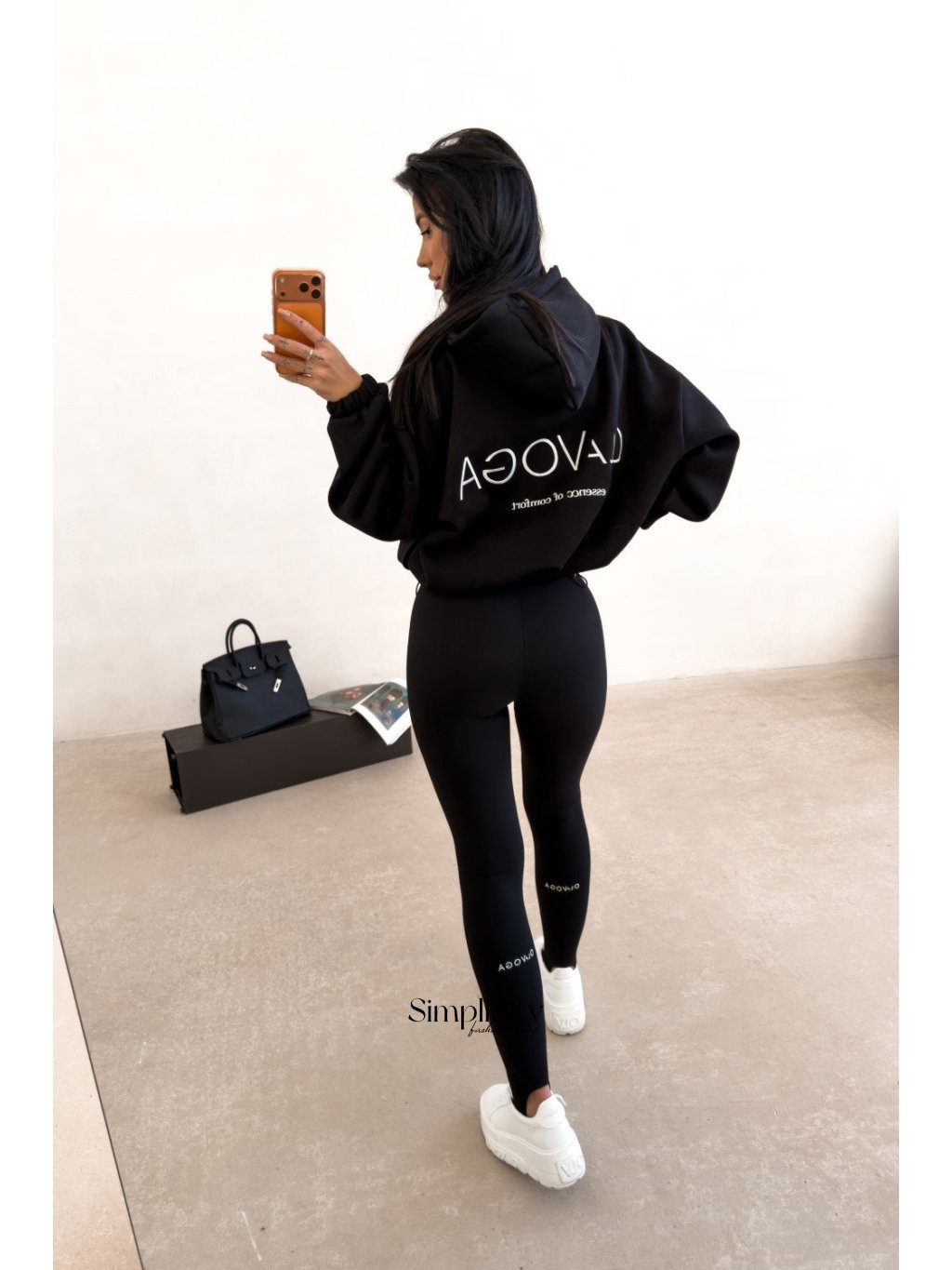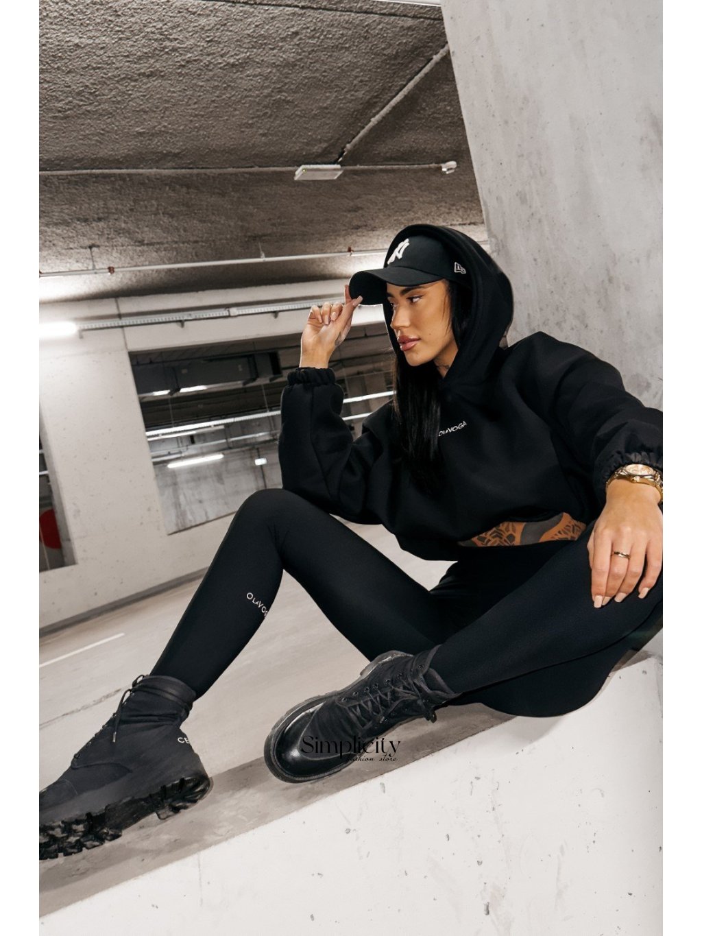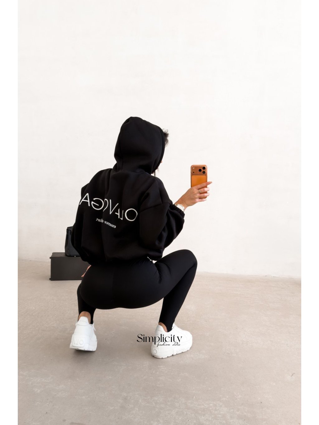 Mikina vyrobená z mäkkého, príjemného na dotyk, hladkého a rovnomerného úpletu. Voľný, pohodlný model s kapucňou. Má dlhé rukávy, ktoré sú zakončené elastickou vsadkou a v spodnej časti je zapínaný na decentnú gumu. Na prednej strane je minimalisticky vyšívané logo OLAVOGA a na zadnej strane je zdobený väčším logom značky a nápisom „essence of comfort“.
