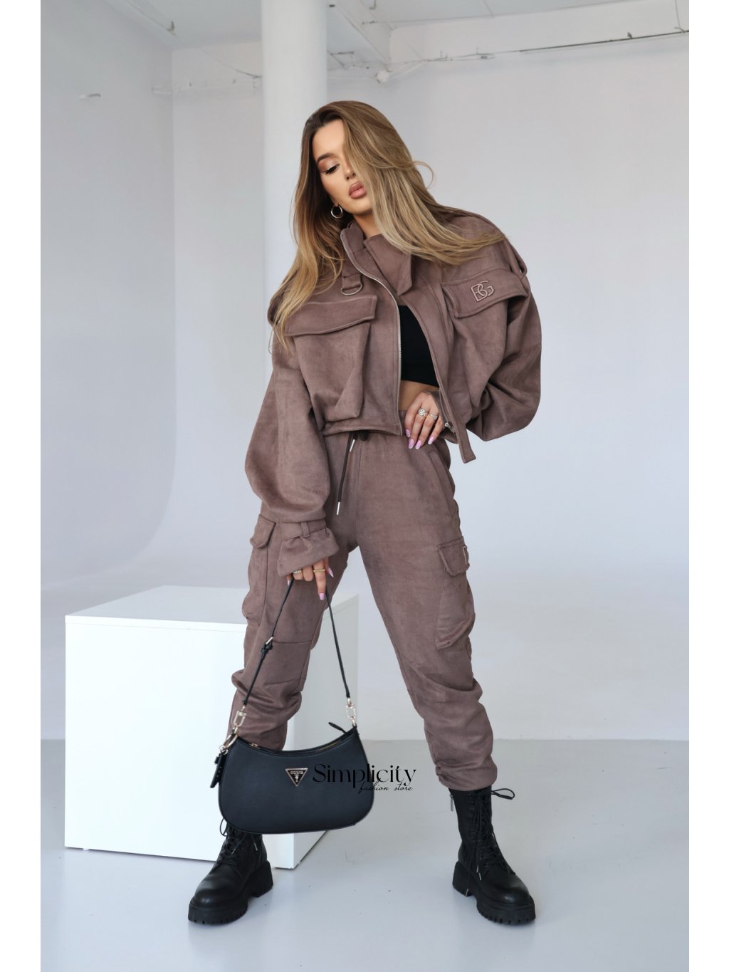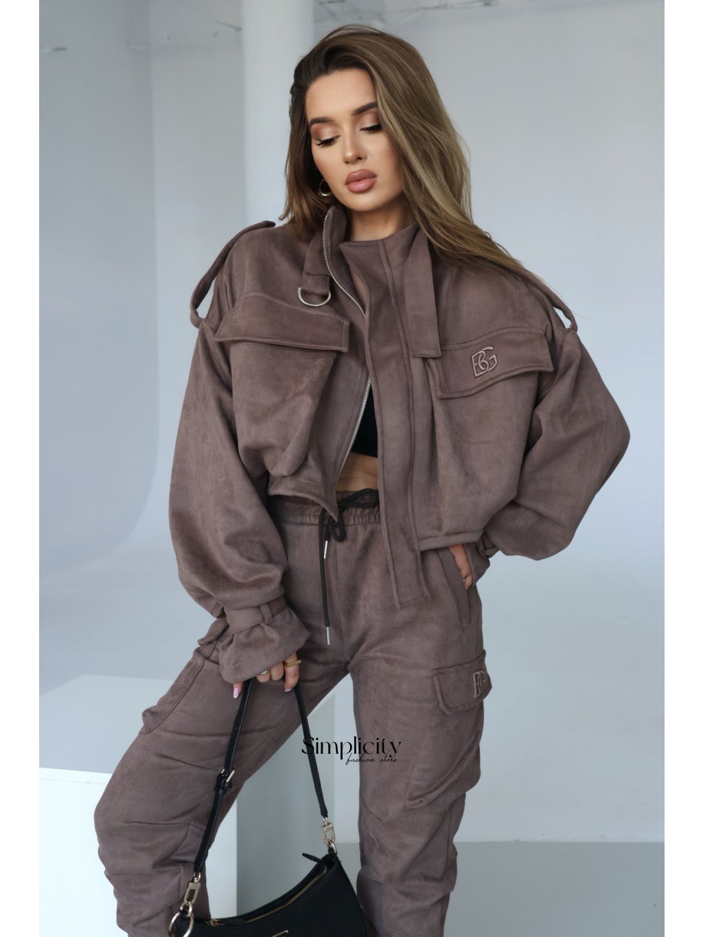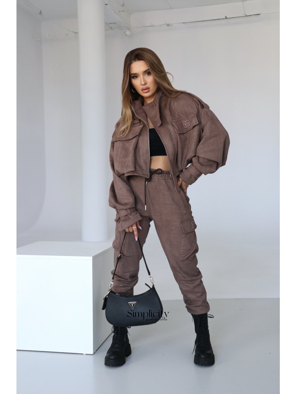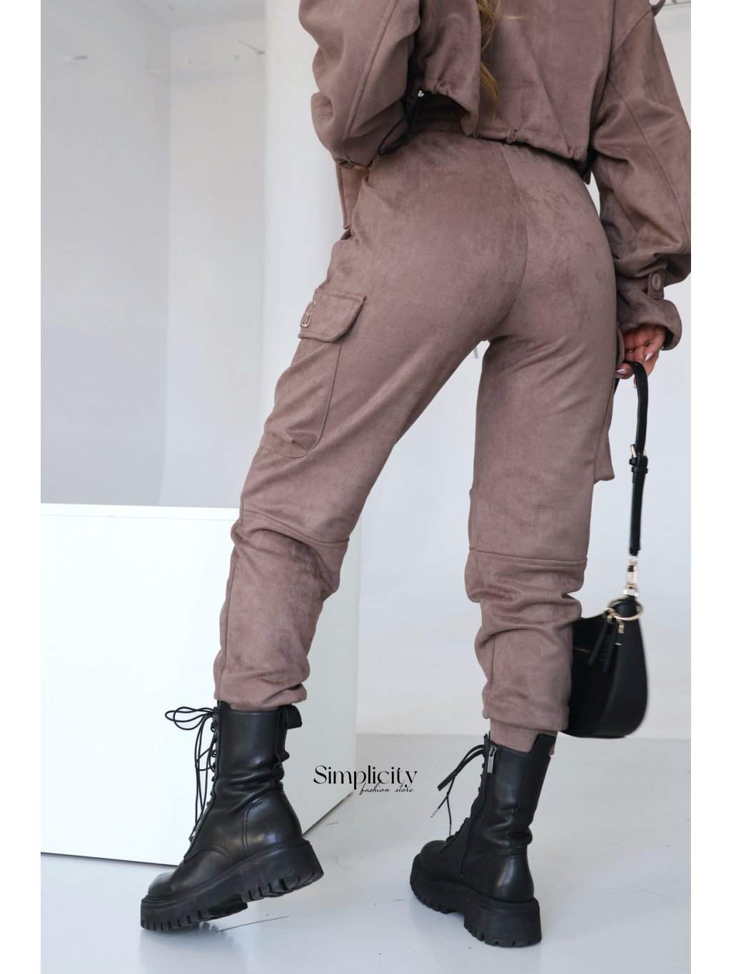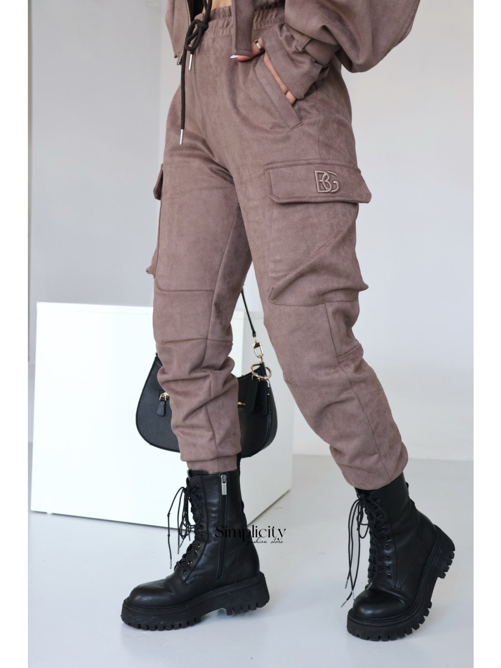 Dámske semišové nohavice BG ARMY. Vysoký pás. Ozdobné bočné vrecká. Manžety s manžetami. Logo BG na klope vrecka. Modelka na fotografii má na sebe veľkosť S.