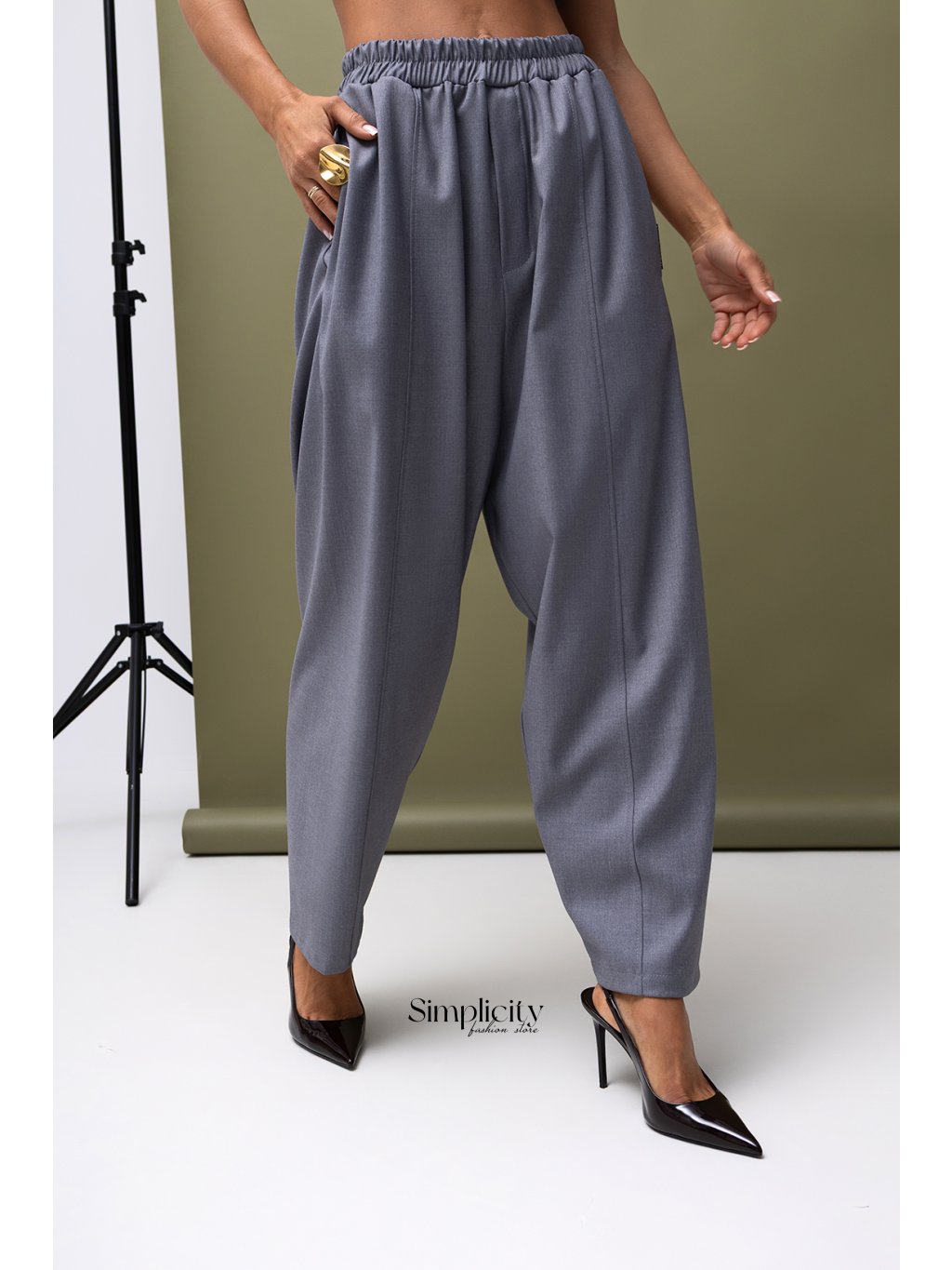 Voľné nohavice so širokým strihom majú vysoký pás a elastický pás.