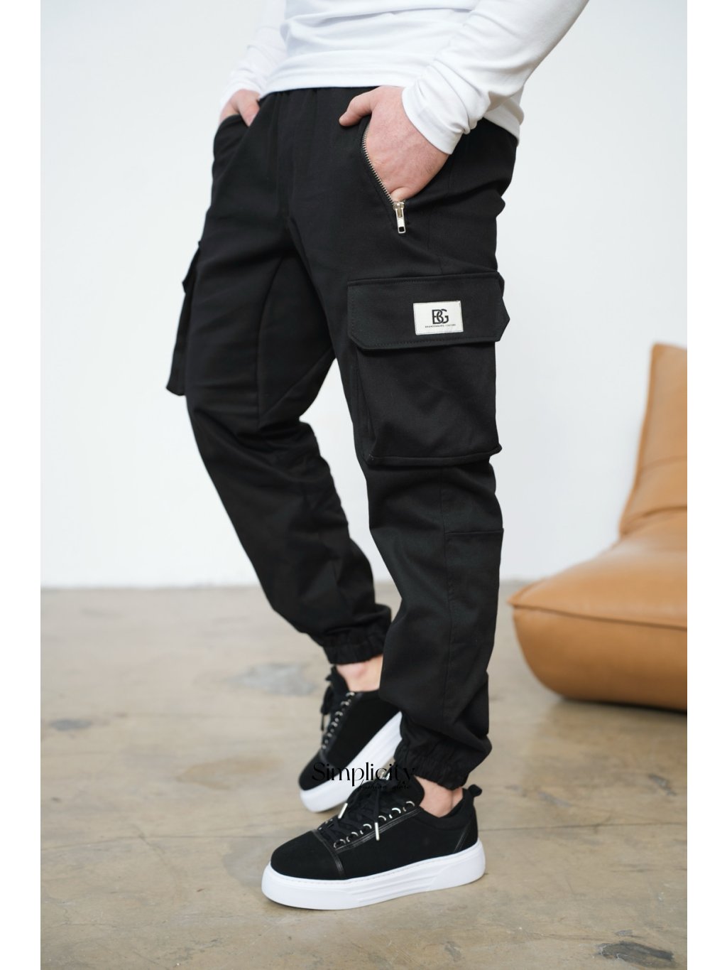 Pánske nohavice BG DEAL vyrobené z vysoko kvalitnej bavlnenej džínsoviny. Nohavice majú elastický pás a vnútornú šnúrku na sťahovanie. Veľké bočné vrecká a dve vrecká na zips vpredu. Na ľavej klope vrecka je vyšitá ozdobná nášivka s logom BG Brandenburg Couture. Elastické manžety.