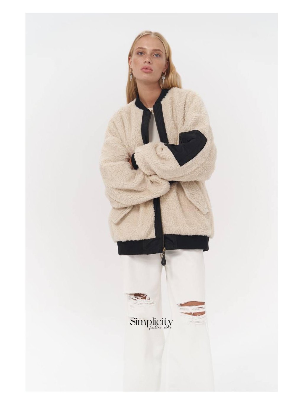 Bunda je obojstranná , z druhej strany šušťáková bomber bunda v čiernej farbe s typickým vreckom na rukáve.