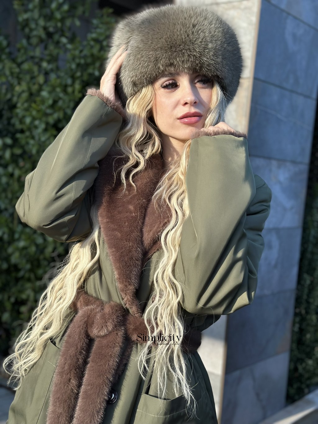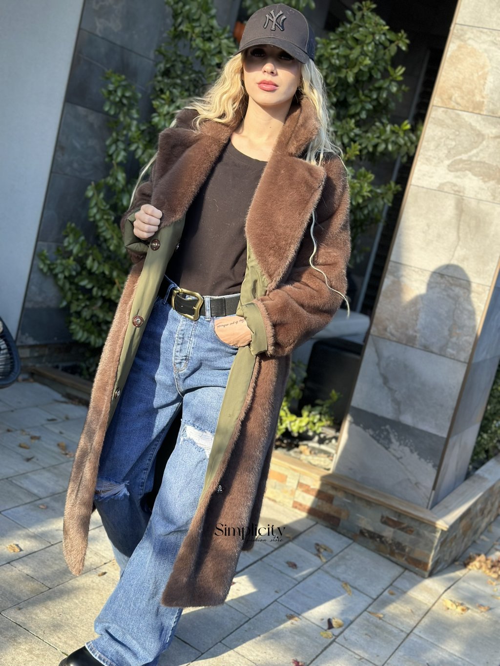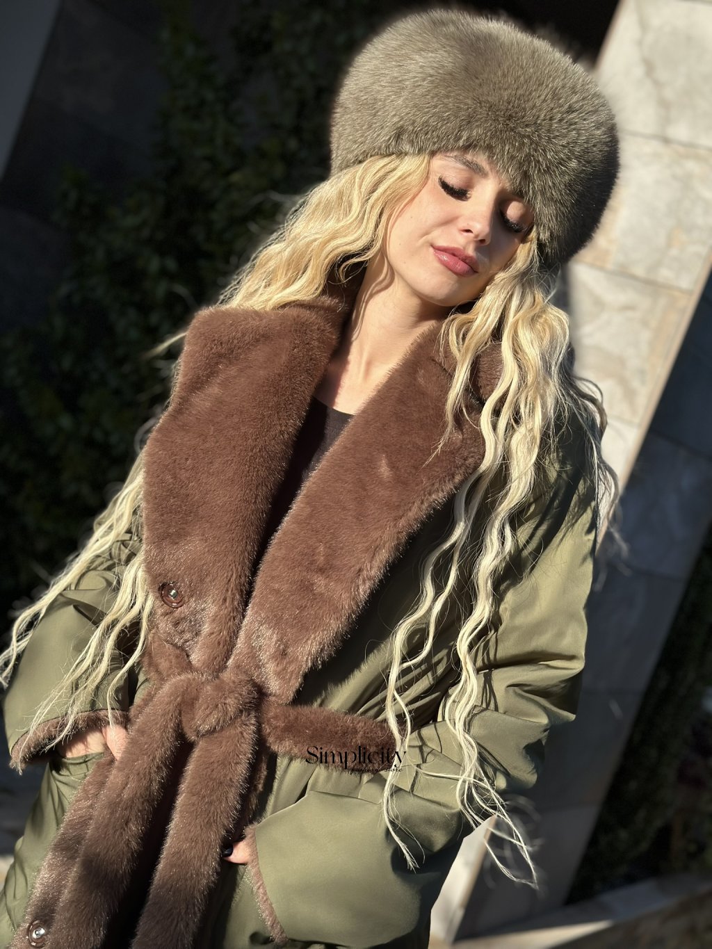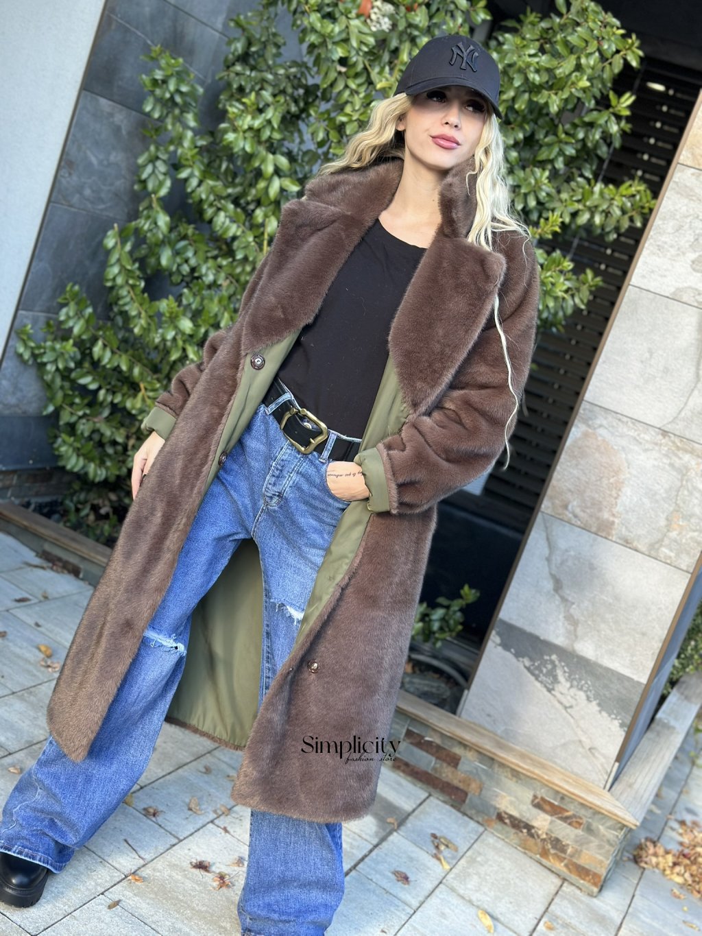 Obojstranný kožuch Mandy khaki+hnedá Premium
