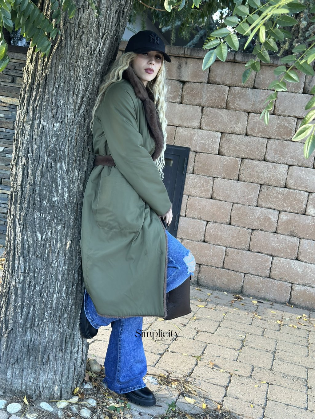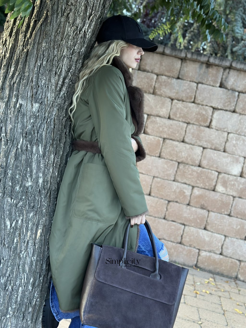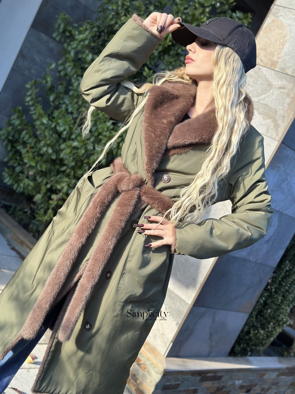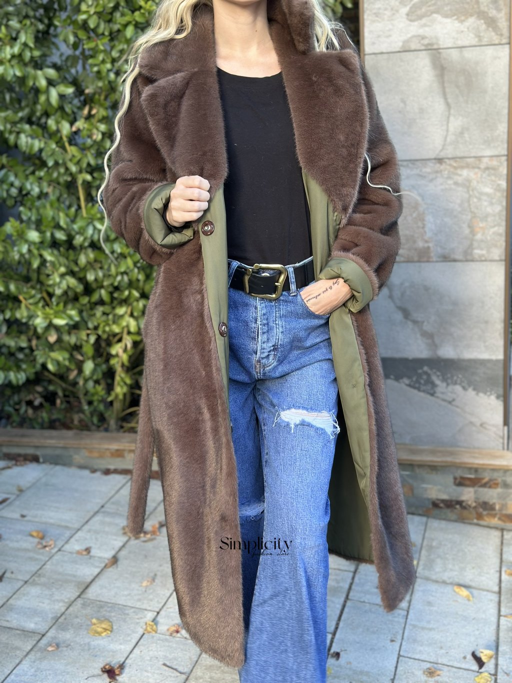 Obojstranný kožuch Mandy khaki+hnedá Premium
