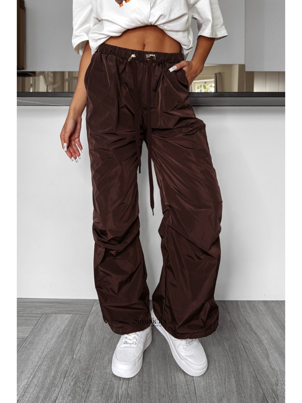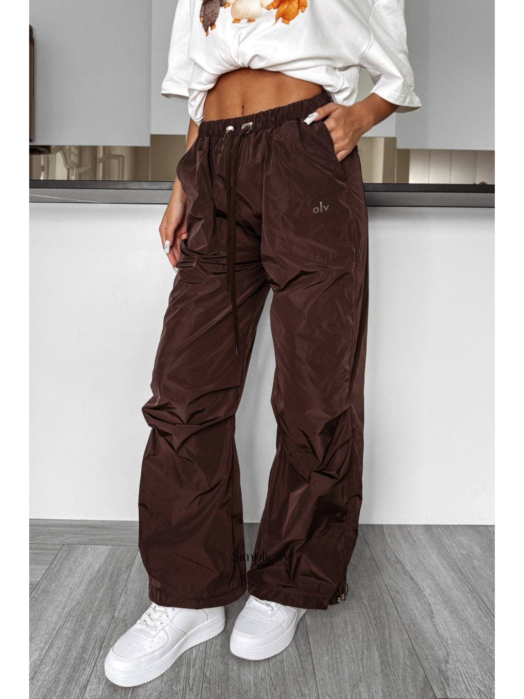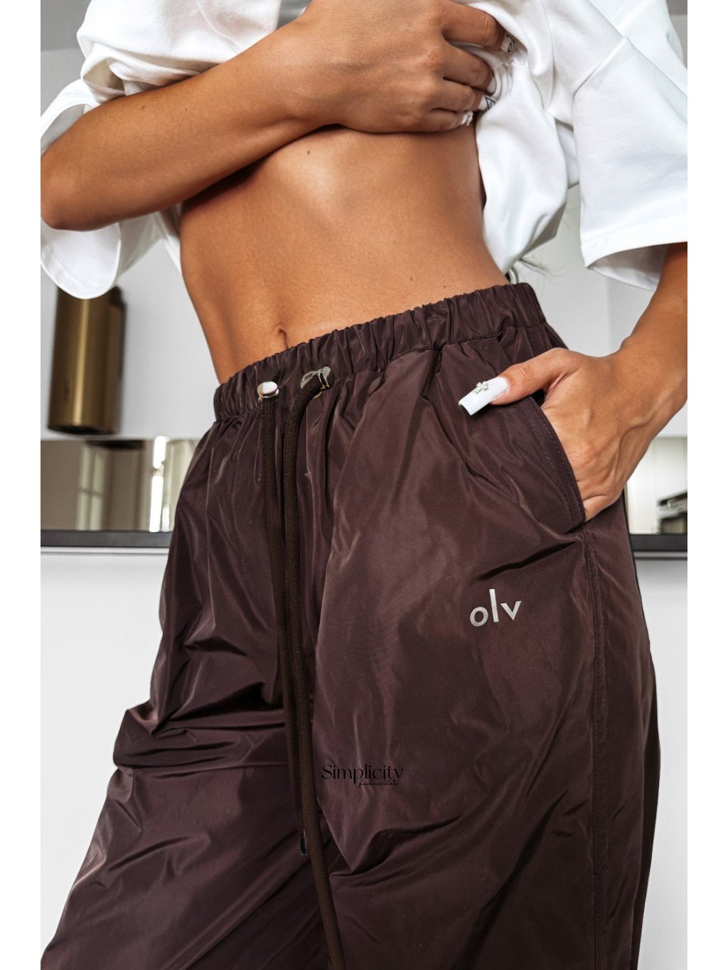 Voľne strihané cargo nohavice s vysokým pásom vyrobené z ľahkého, vzdušného materiálu. Pás má elastický dizajn s nastaviteľnou šnúrkou a zarážkou, čo zaisťuje pohodlné nosenie. Nohavice majú na boku čistý nápis "OLV" a na zadnej strane praktické vrecká. Konce nohavíc sa dajú tiež nastaviť šnúrkou, takže si môžete ľahko upraviť strih.