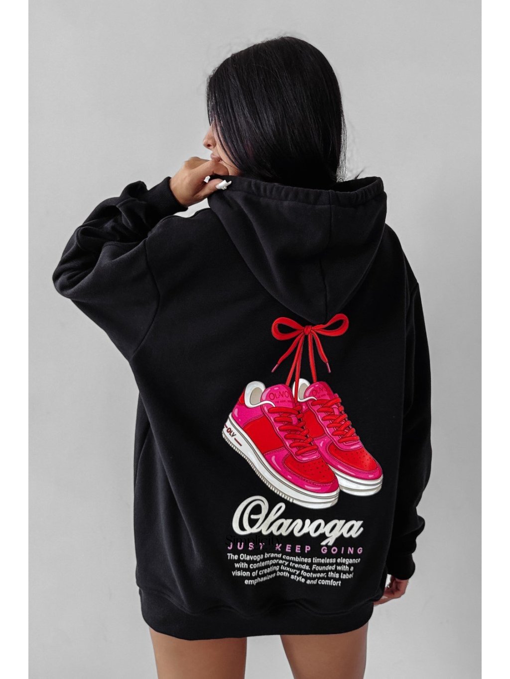 Dámska oversized mikina s predĺženým strihom, vyrobená z prémiovej bavlny s miernym strečom pre ešte väčšie pohodlie. Kapucňa je nastaviteľná a veľké klokanie vrecko na prednej strane zaisťuje praktickosť. Na hrudi je ručne písané, minimalistické logo OLAVOGA so špeciálnym vzorom. Zadná strana je zdobená veľkou, brandovanou grafikou, vďaka ktorej je vzhľad naozaj trendy.