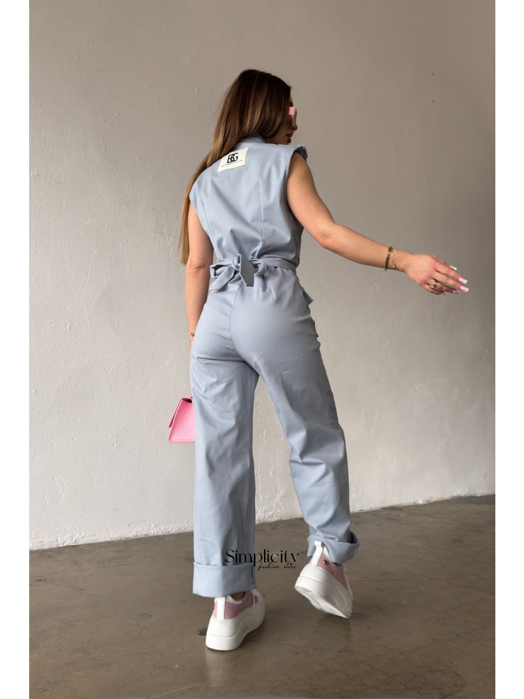 Dámsky overal BG MANGO z bavlneného denimu. Zapínanie na zips s kokosovými gombíkmi. Súčasťou balenia je zaväzovací opasok. Rovný strih nohavíc. Značka BG na chrbte. Vypchávky na ramená. Tento overal je ideálny na ležérne aj elegantné outfity.
