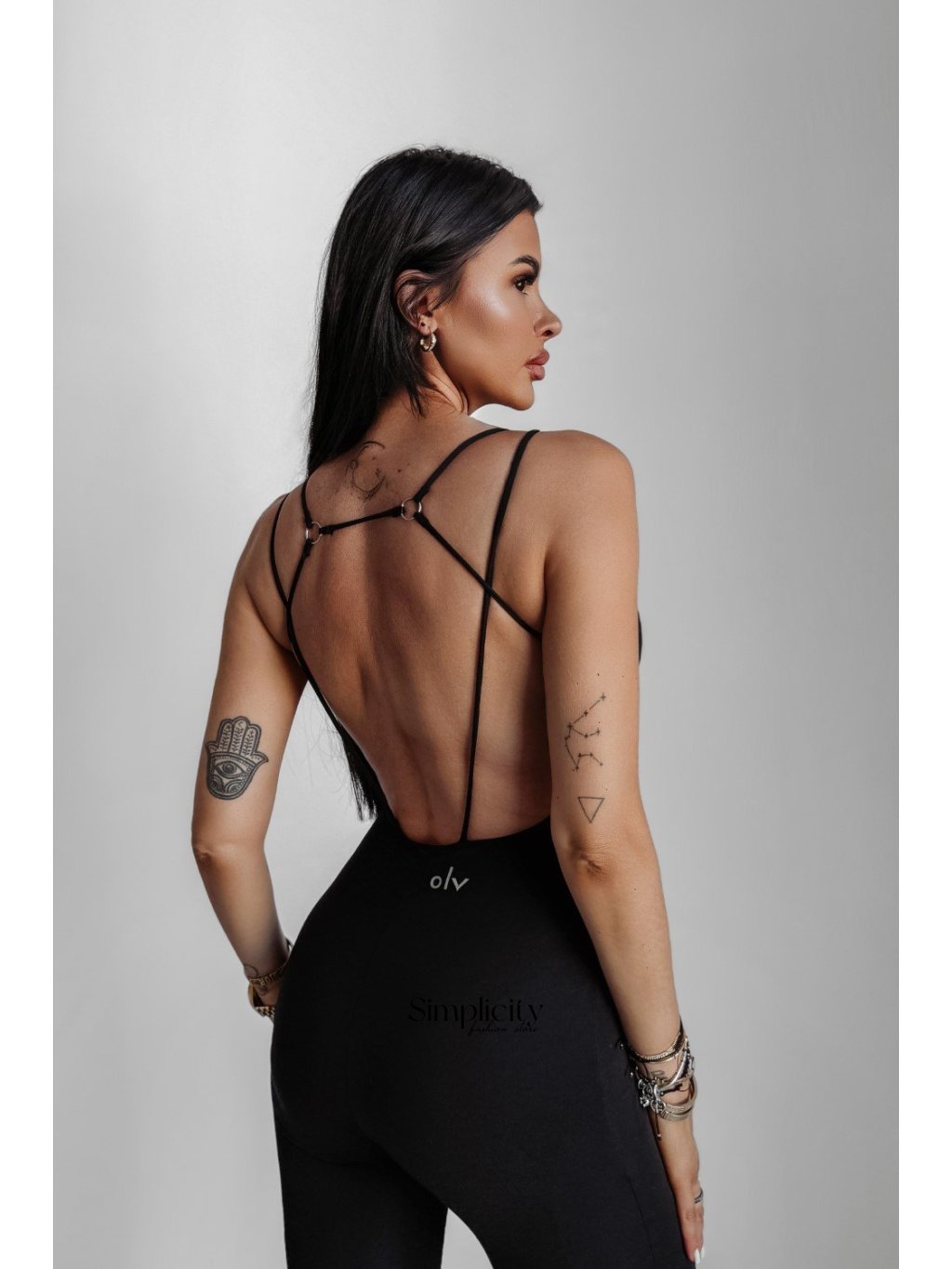 Perfektne padnúci overal s tenkými ramienkami a otvoreným chrbtom . Model je vyrobený z kvalitného, elastického materiálu , ktorý obsahuje aj viskózu, čo zaisťuje pohodlné nosenie a elegantný vzhľad. Hlboký výstrih vpredu , minimalistické logo OLV na zadnej strane .