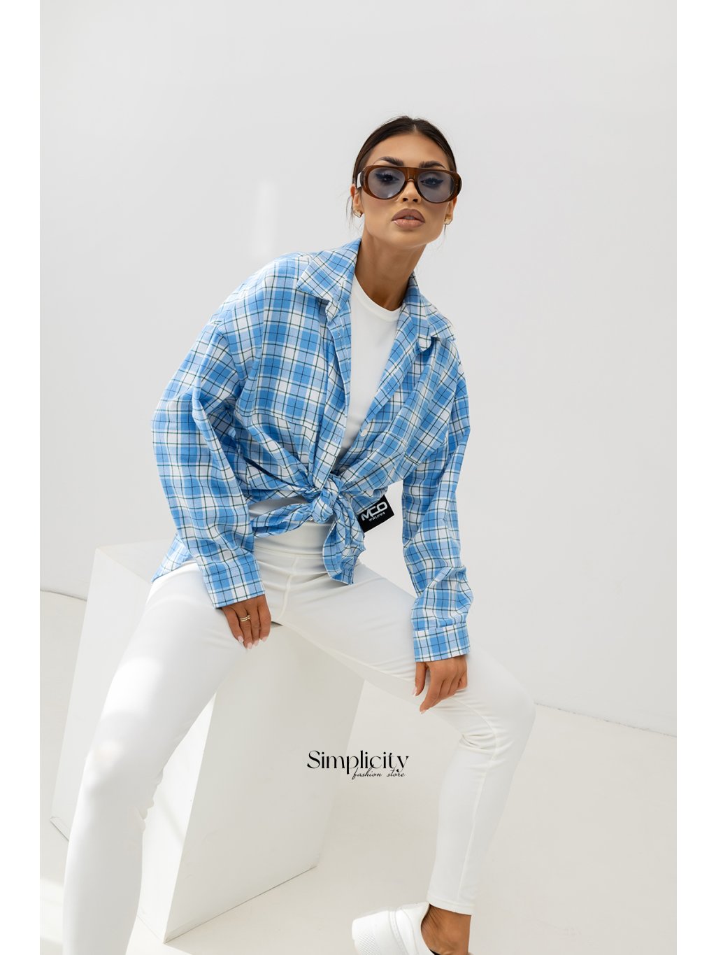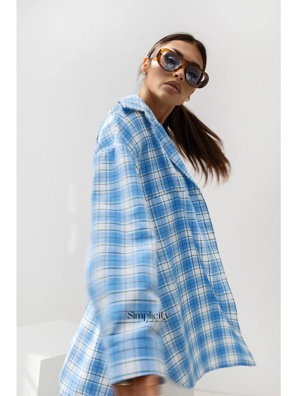 Oversize košeľa MCO Need You More bledomodré káro