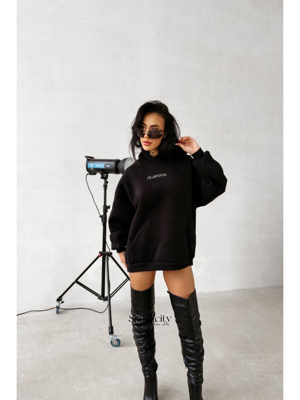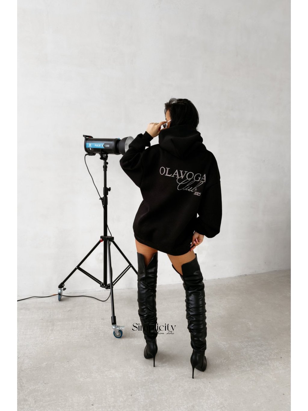 Táto nadrozmerná mikina s kapucňou je prémiovým kúskom streetwearu vďaka husto tkanej, mäkkej látke a výrazným krištáľovým ozdobám na chrbte. Materiál: 80 % bavlna, 20 % polyester – mäkký, „mäsitý“ pocit a hustá väzba denimu, ktorý výborne udržiava teplo a tvar. Strih: Extra pohodlný oversize strih so zníženými ramenami a priestranným "klokaním" vreckom vpredu. Dizajn: Široké, rebrované vložky na manžetách a spodnej časti svetra pre stabilné nosenie. Dizajn: * Zadná strana: Veľkolepý nápis OLAVOGA Club 2015 vykladaný drobnými kryštálmi, ktorý sa elegantne trblieta pri každom pohybe. Predná strana: Diskrétne vyšívané logo pre čistý vzhľad.
