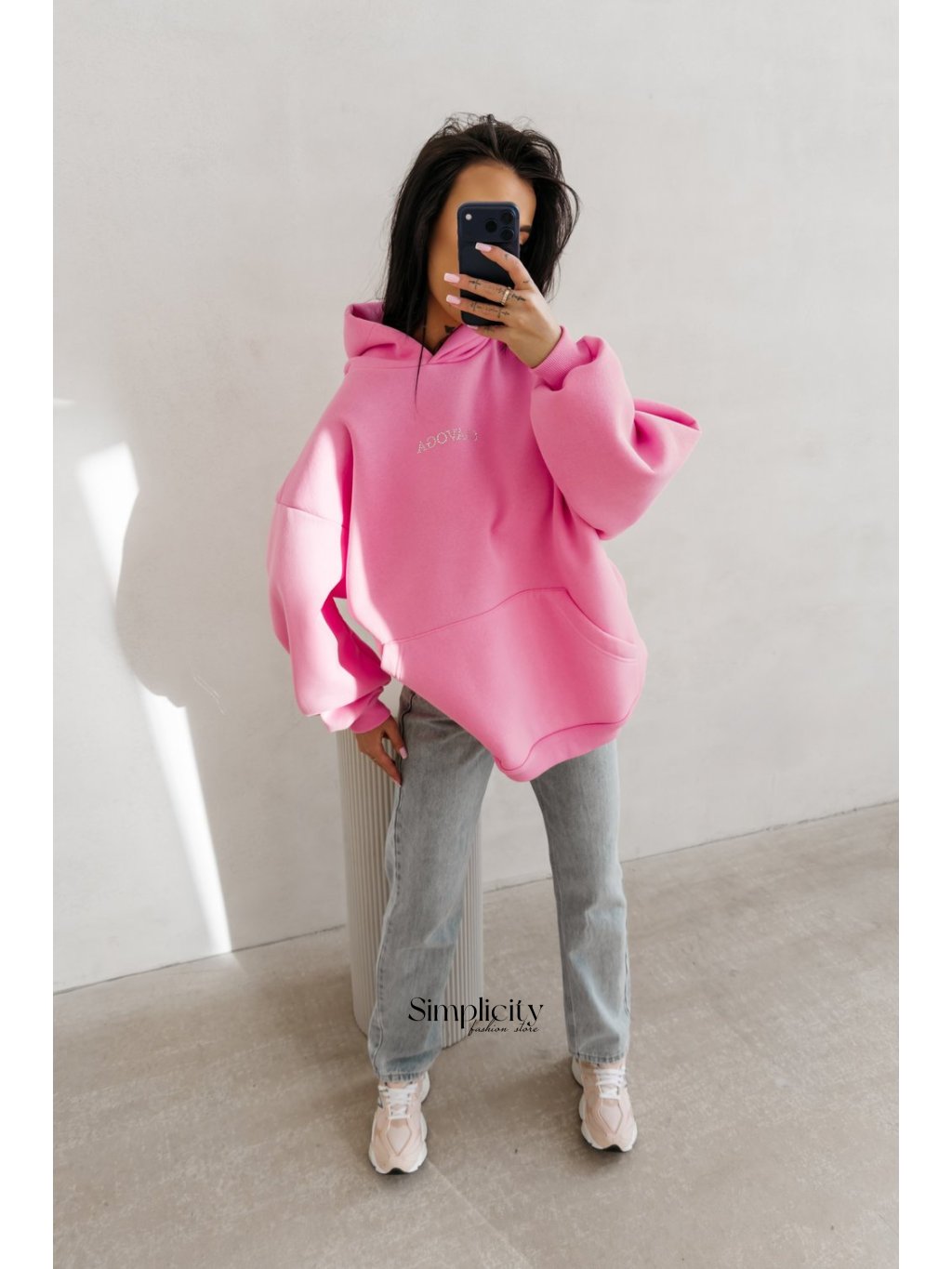 Strih: Extra pohodlný oversize strih so zníženými ramenami a priestranným "klokaním" vreckom vpredu.