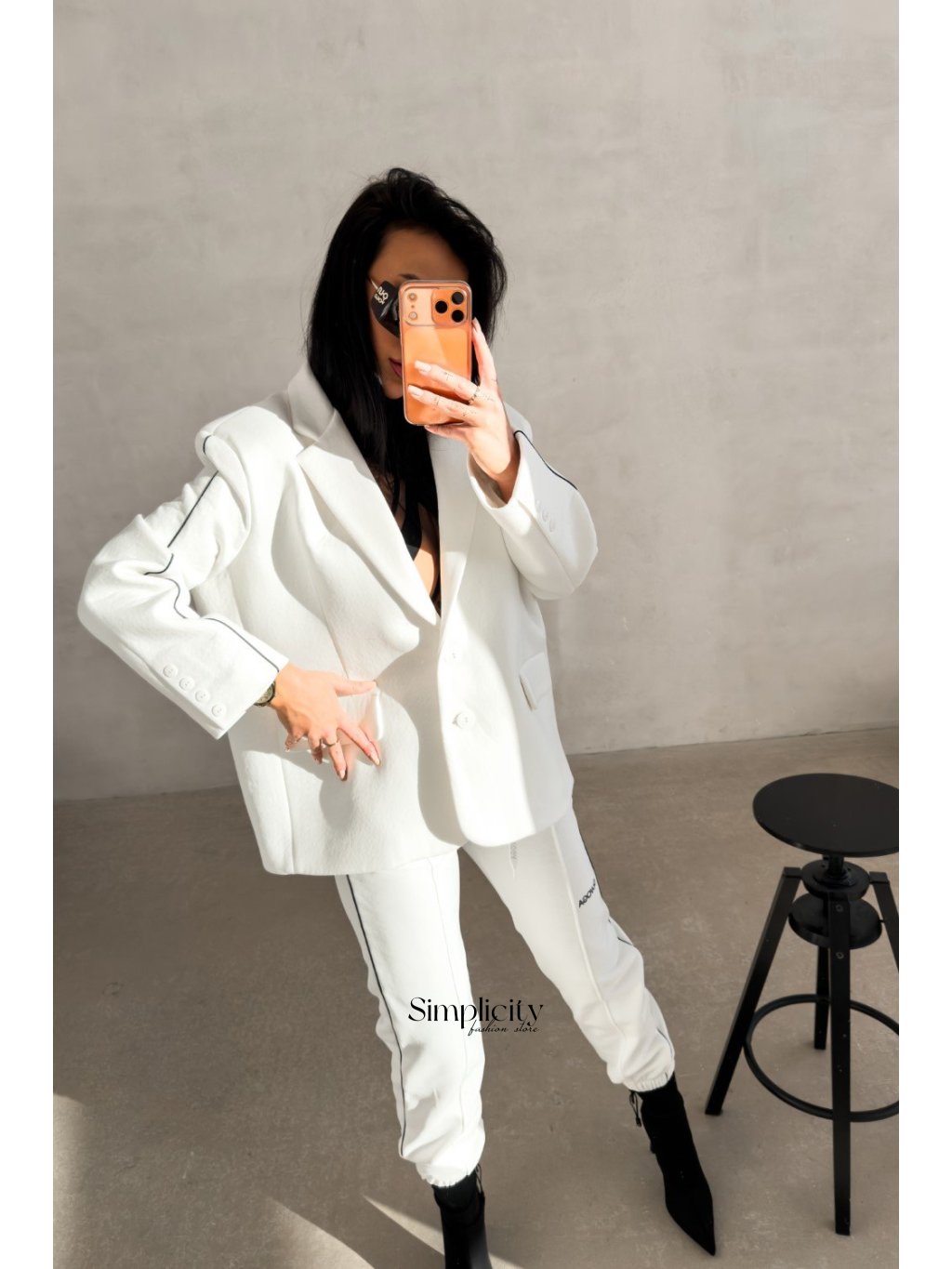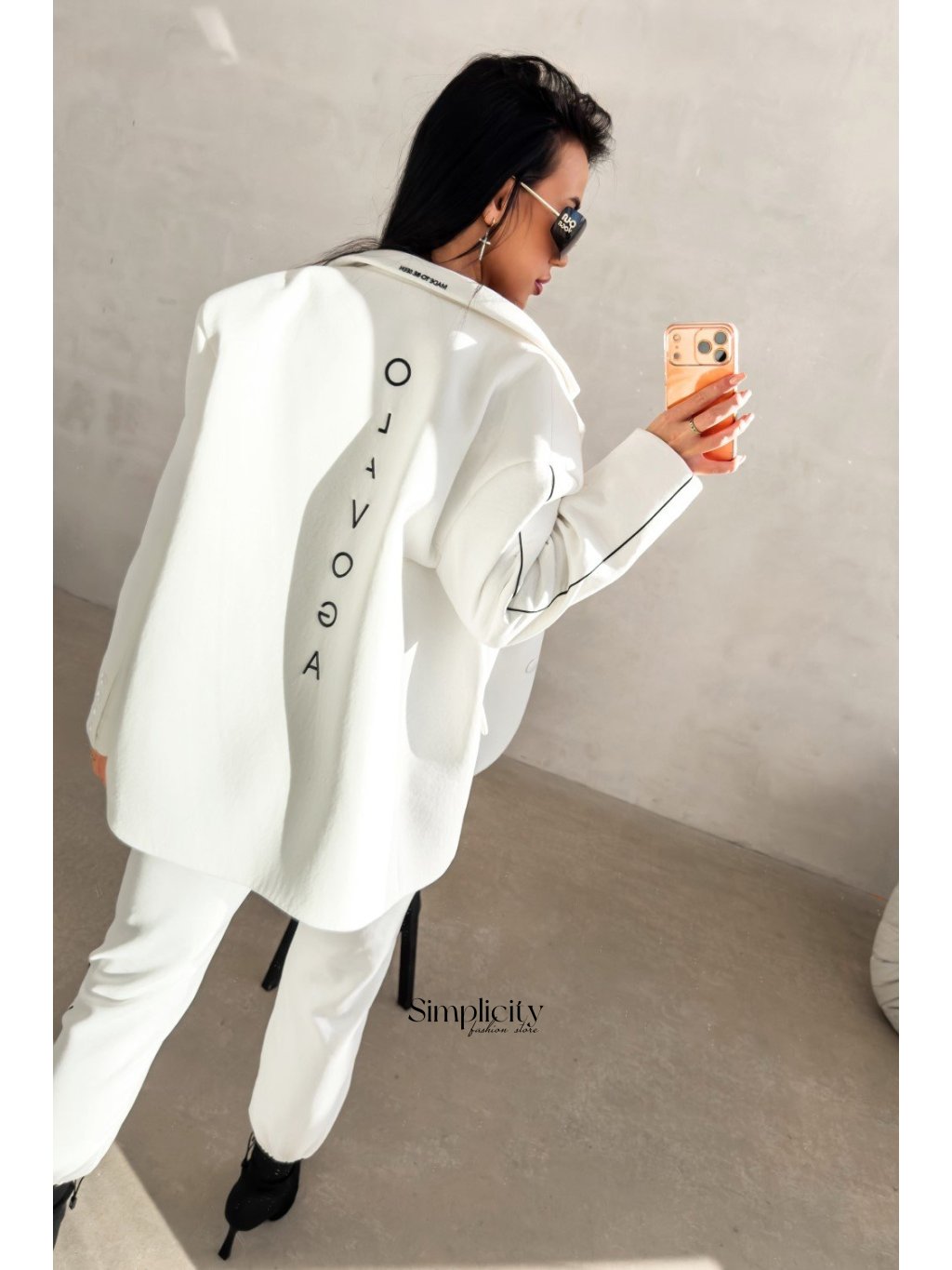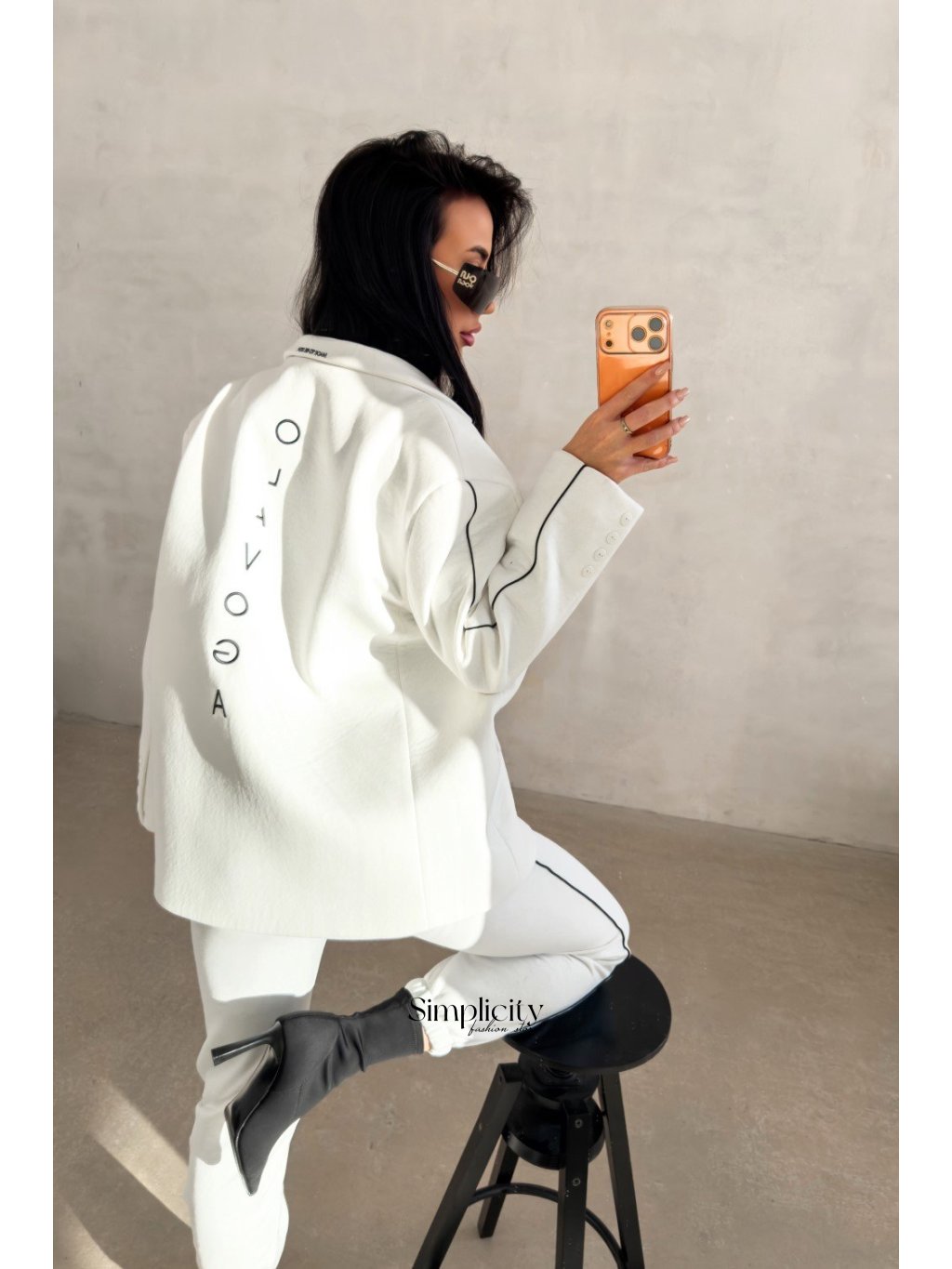 Klasická elegancia s moderným, mierne nadrozmerným strihom. Sako je vyrobené z prémiovej, hladkej látky, takže je pohodlné aj štýlové zároveň. Unikátne detaily, ako je výšivka „Made to be seen“ na golieri a vertikálne minimalistické logo na chrbte, ho robia skutočne výnimočnou.