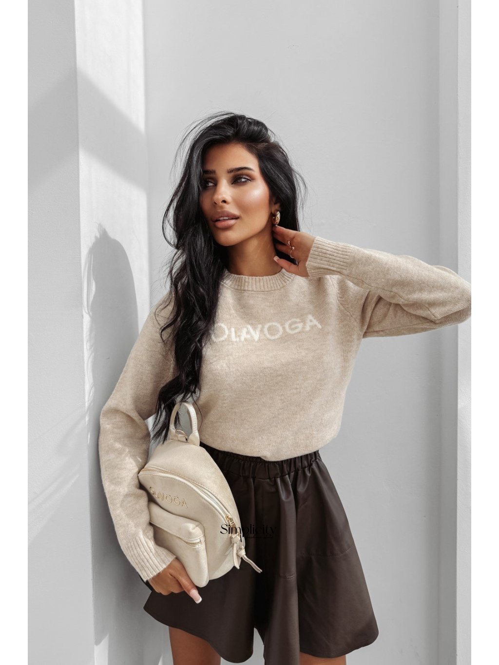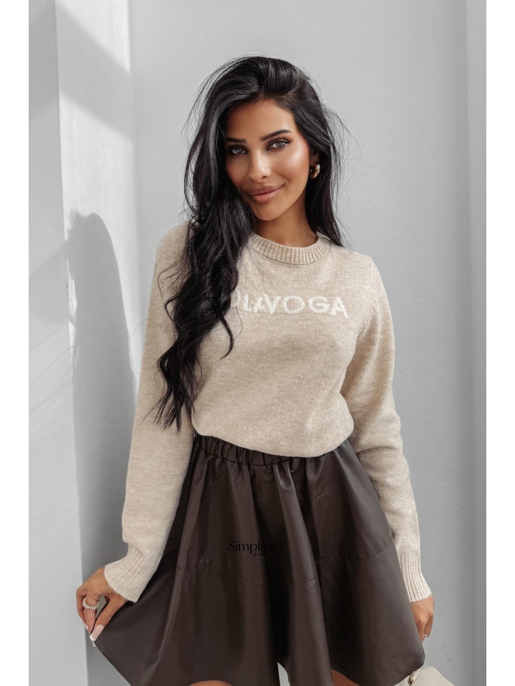 Dámsky sveter,vyrobený z mäkkej, teplej látky, s okrúhlym výstrihom a vyšívaným logom.
