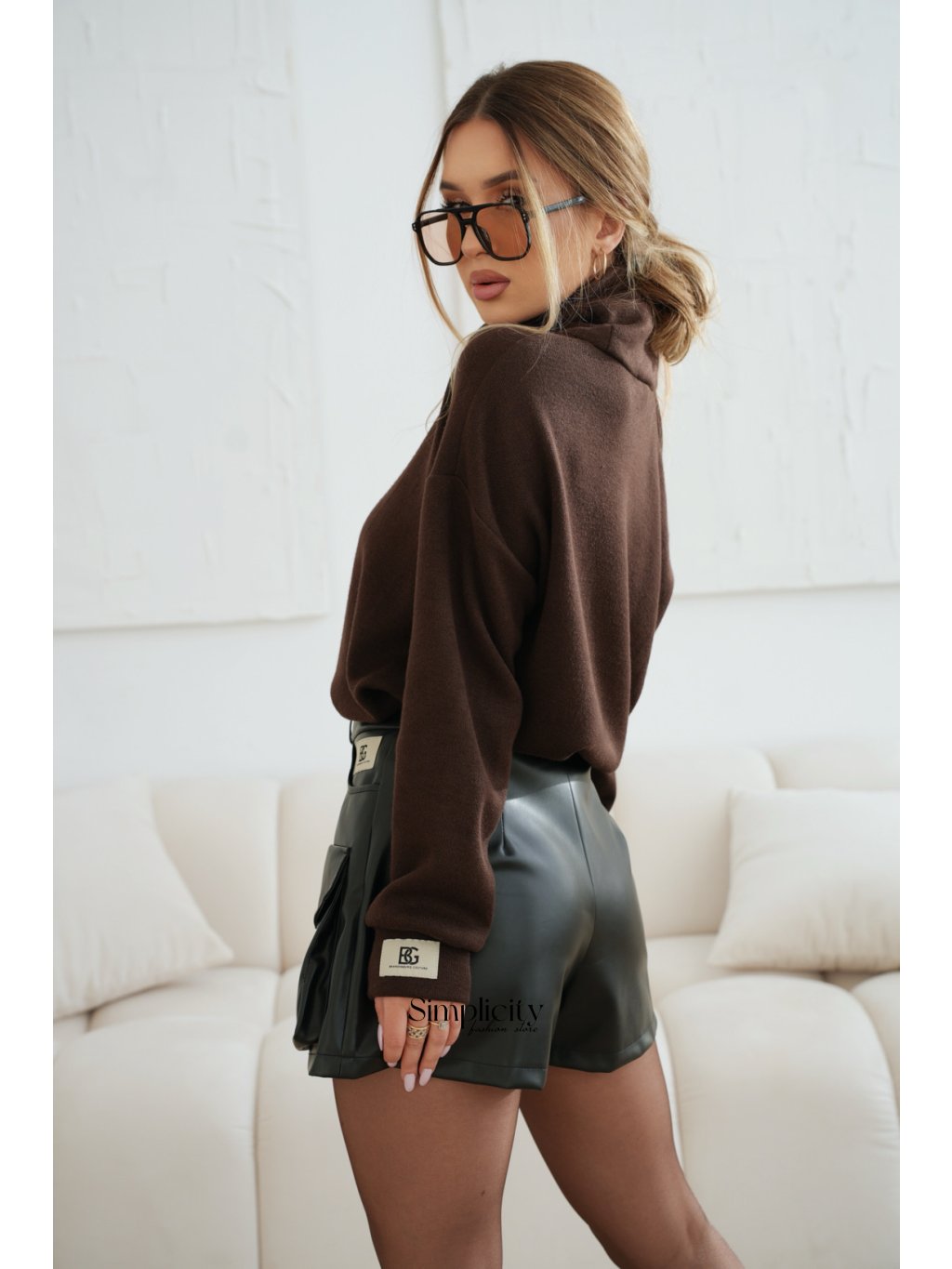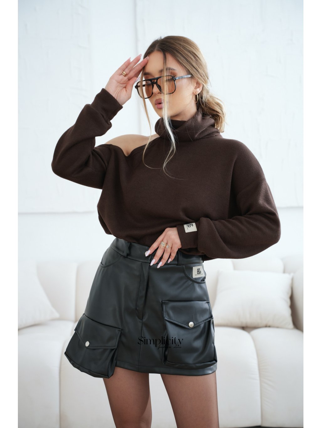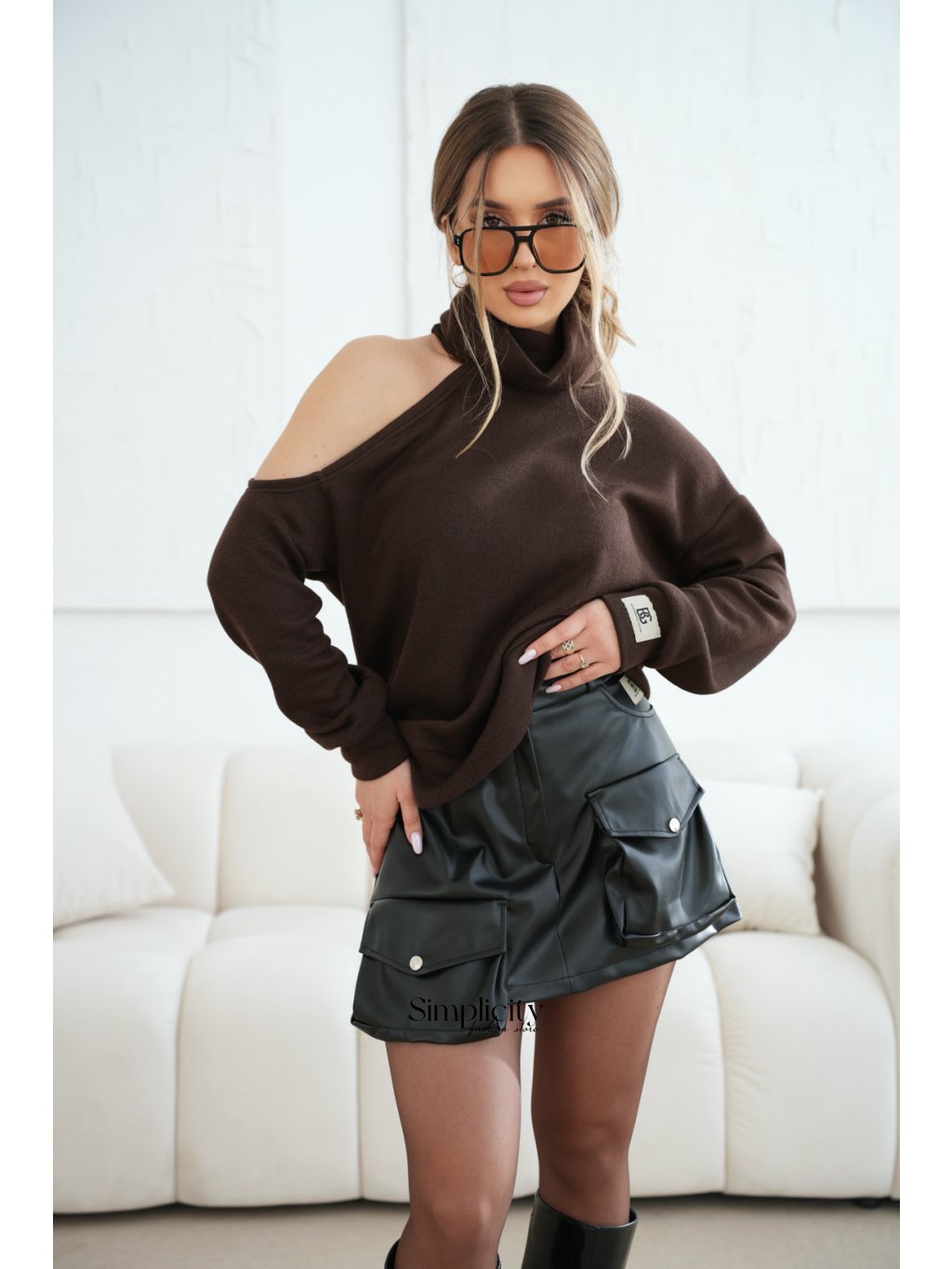 Tento asymetrický dámsky sveter kombinuje eleganciu s ležérnym vzhľadom vďaka mäkkému úpletu a módnemu výstrihu na ramenách. Sveter je navyše ozdobený nášivkou s logom BG Brandenburg Couture na ľavej manžete.