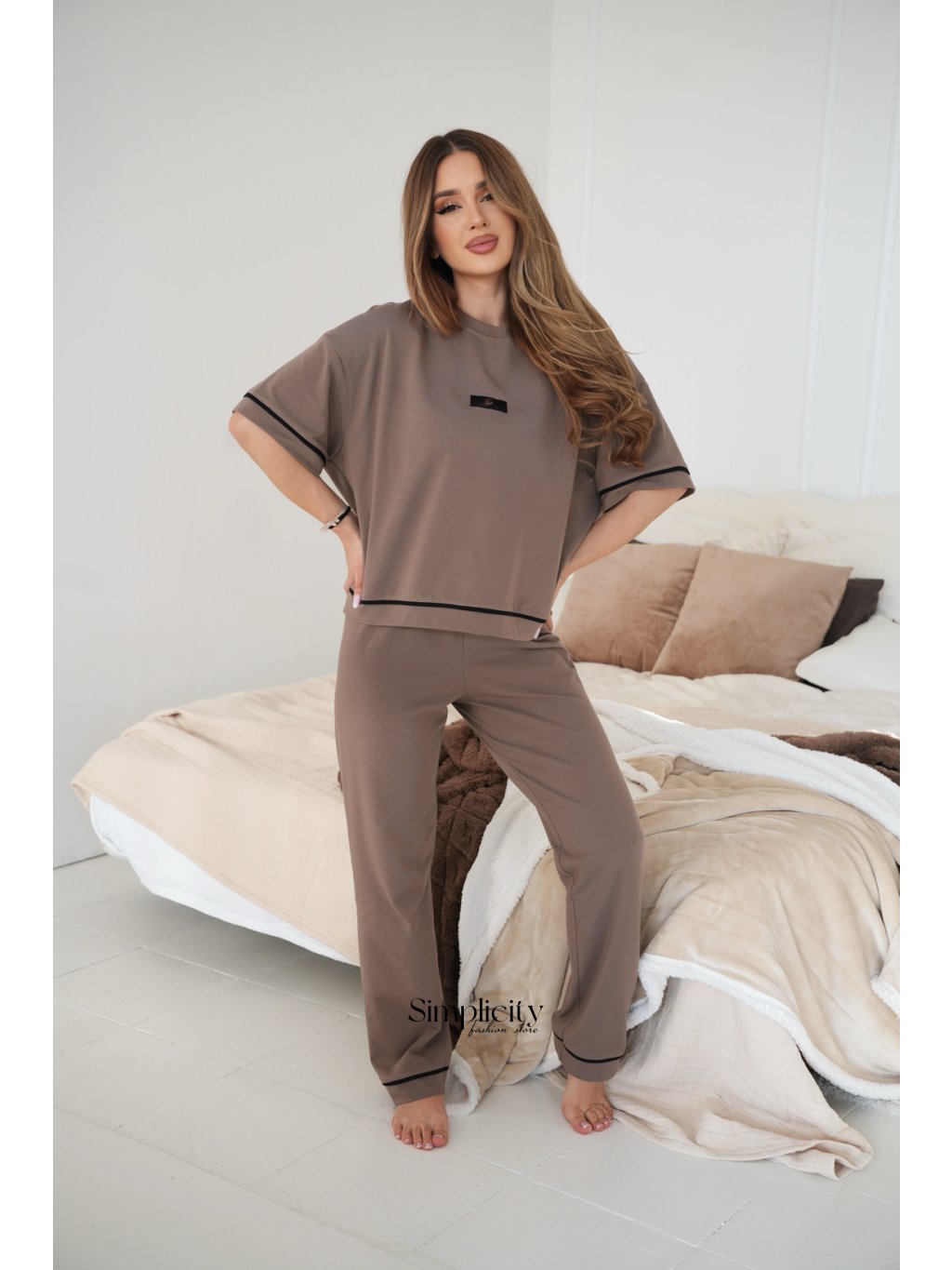 Dámske dvojdielne pyžamo z vysoko kvalitnej bavlny s elastanom. Oversized tričko s krátkym rukávom. Dlhé, rovné nohavice. Súprava je zakončená čiernym lemovaním a malou štítkom s logom BG Brandenburg Couture.