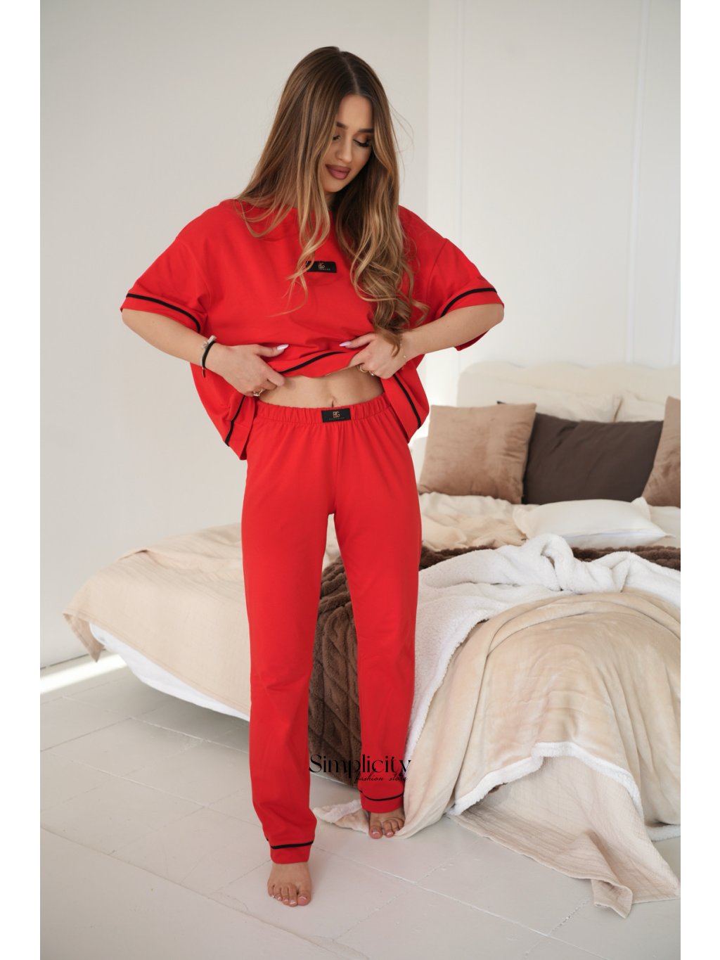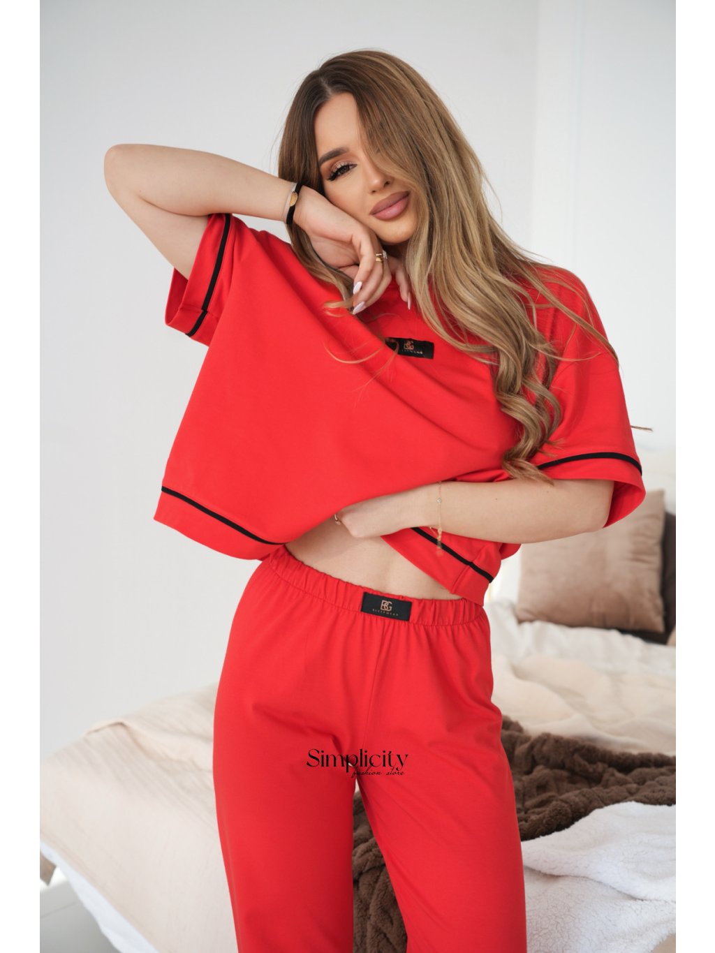 Dámske dvojdielne pyžamo z vysoko kvalitnej bavlny s elastanom. Oversized tričko s krátkym rukávom. Dlhé, rovné nohavice. Súprava je zakončená čiernym lemovaním a malou štítkom s logom BG Brandenburg Couture.