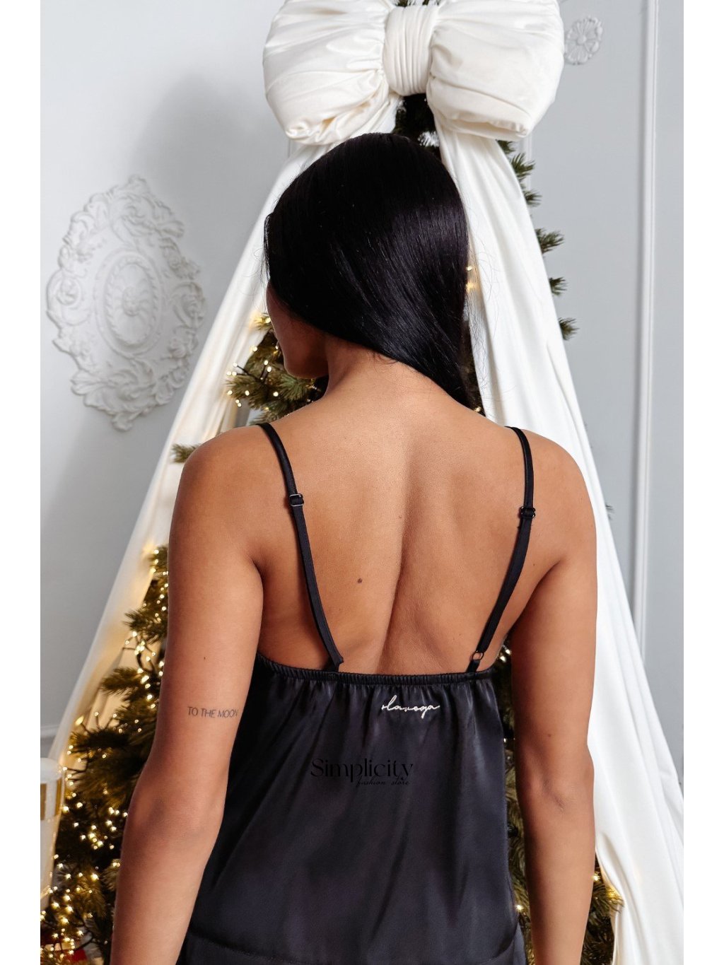 Vrchný diel: Tenký top s nastaviteľnými ramienkami s jemnými čipkovanými vsadkami vo výstrihu. Na chrbte je decentná ručne písaná výšivka loga OLAVOGA.