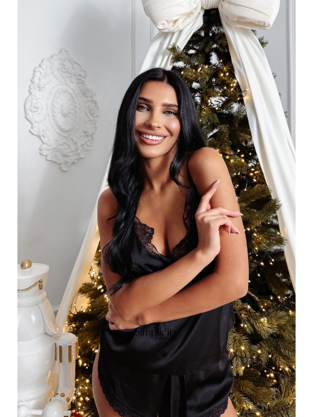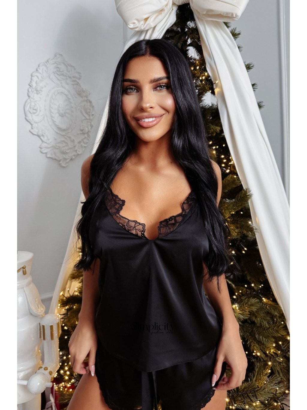 Dámska pyžamová súprava vyrobená z ľahkého, na dotyk príjemného saténového materiálu.